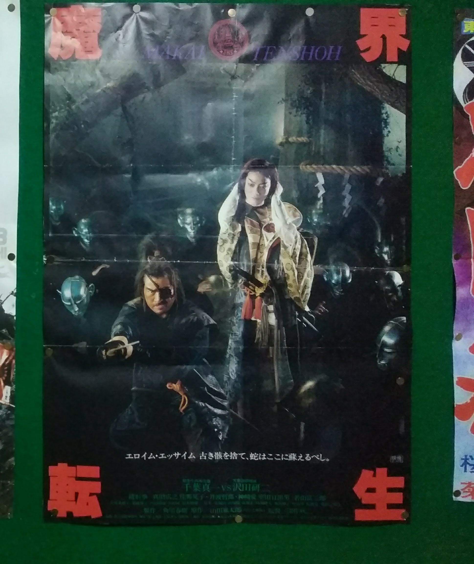 まずは『魔界転生』。二年前の京都怪奇映画祭NIGHTでも見たし、過去に新世界でも見た、もちろん、テレビ、ビデオ、DVDでも何度も見た、フェイバリット作品。これ以降、何度も舞台化、映像化されてすっかり時代劇の古典となっている。『80年代の映画はもう古典』というみなみ会館館長の言葉と、とある編集さんの『男はみんな魔界転生が好き』という言葉が甦る。ご存じ柳生十兵衛VS天草四郎率いる魔界衆の対決、原作を大幅にカット、というかほとんど別物にして天草四郎をラスボス的位置にし、オカルト+チャンバラの魅力を盛り込んだのが勝因かと思われる。何度見てもラストの豪華での大立ち回りはすさまじい。夜勤明けだったので、途中何度か寝落ちしてしまった。