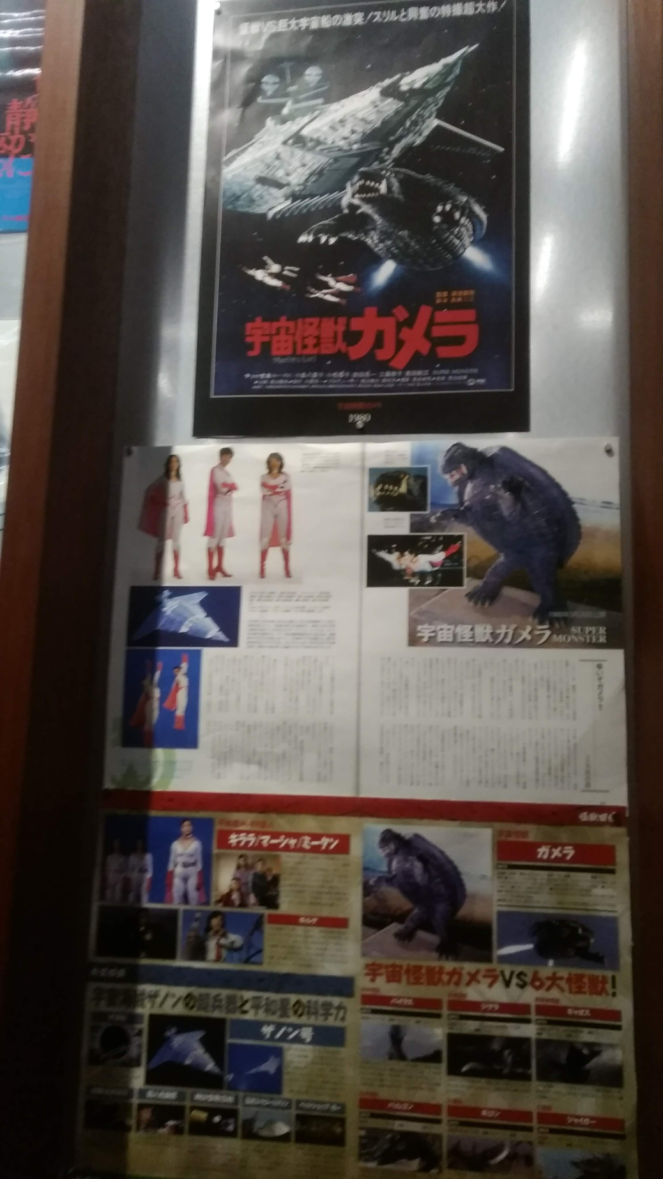 サイン会を挟み、映画上映開始。ガメラと歴代怪獣の戦い、当時20歳とは思えないぐらり、凛々しいマッハさんの活躍をやや赤くなったフィルムで堪能。しかし、まとめて見るとガメラの戦法は刺したり引きずり込んだりとえげつないし、怪獣も海にバイラス、ジグラ、大阪にバルゴン、ジャイガー、名古屋にギャオスと、宇宙海賊の采配の悪さっぷりが目立ちました。