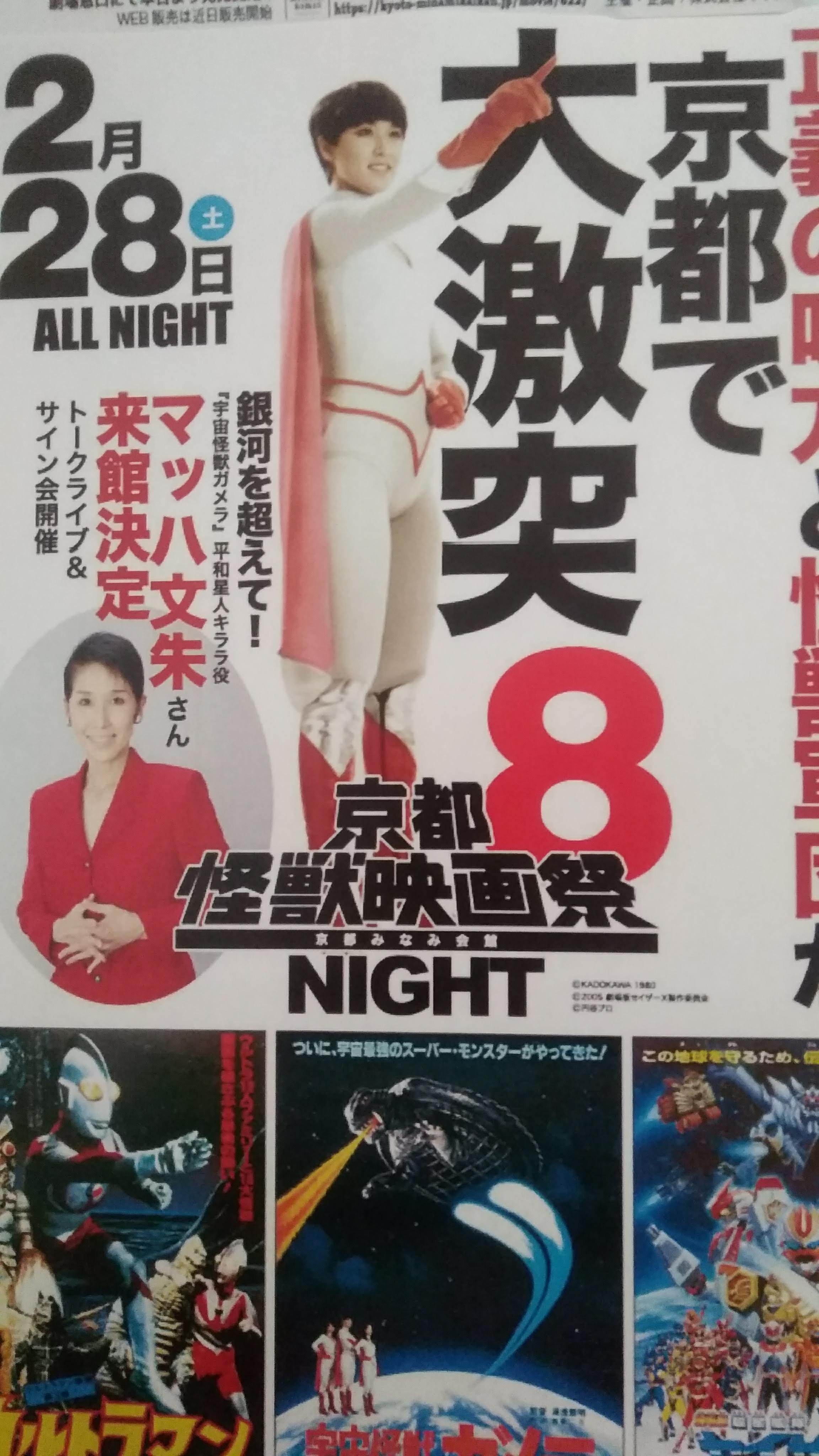 PR 年末の忙しい時期に、怪獣映画に浸る……京都みなみ会館恒例の京都怪獣映画祭NIGHTも今回で8回目。もちろん、新装してから初の開催。去年はみなみ会館がお休み中だったので、ロフトプラスワンウエストでオールナイトイベントが開催されました。え、あれからもう一年経つの? 前回の日中ファンタジー二本立てから一息つく暇もなく(いや、本当は結構お休みした)、慌ててうろ覚え新聞を書いて、本番ぎりぎりに入稿。