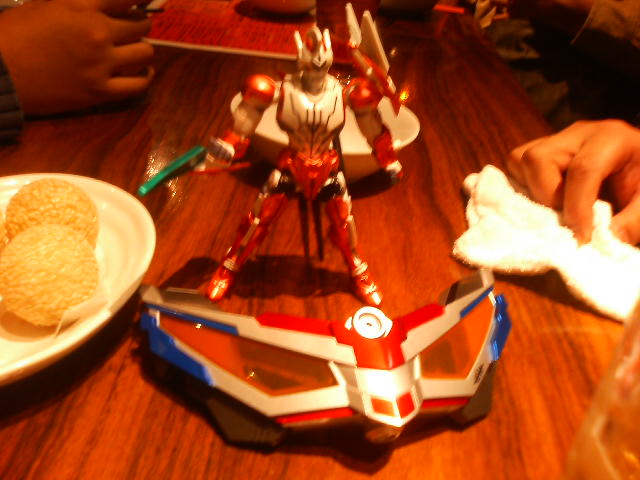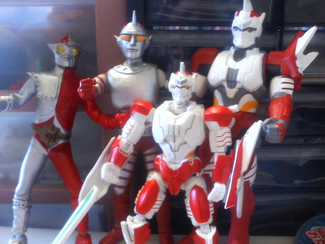 来月には何らかの形になる、と思います。 2011年、初めての映画は『くまのがっこう』『チェブラーシカ』のなんともかわいい二本立てで幕を開けました。 『くま』はあのイラストをよく一つの物語にしたなあ、と感心。チェブラーシカは実は日本製で、どこかで見たことあるなあ、と思ったら、かつて旧ソ連で作られたバージョンのリメイクも入っているとか。 人形アニメのリメイクといえば、『タイタンの戦い』はリメイクの際はCGになったし、古いところでは『失われた世界』は、人形アニメから実物のトカゲを恐竜に見立てる進歩してるんだかなんだか分からない形でリメイクされましたから、人形アニメを人形アニメでリメイクって史上初では? cg全盛期に、モデルアニメは不要か? と聞かれたら否! と答えたくなる、そんな一編。ものすごい手間かかってると思うけど。 映画の後は、恒例の『黒龍会』。新年会です。 年に一度、会うか会わないかの面子がそろっていつものように年末のテレビから、漫画の話……って毎年話している内容が一緒のようですが、気のせいか。 飲み会の様子。テーブルにはいつものように玩具、そして大阪の夜景を見下ろしながら酒を飲むと、なんだか偉くなったような、悪い人になったような気がします。 そしてこのおもちゃ、これこそ新年早々出会ってしまった優れもの。 遠い星から贈り物、食玩『変身ジャンボット』! 年末の映画で大活躍だったジャンボーグもとい、ジャンボットをフィギュア化。 ちゃんと差し替えで飛行形態ジャンバードにも変形できる。やっぱり、拳は機首から出ていたのか。 うちのジャンボーグさんたちと並べる。 タイのメーカーがバンダイサイズのソフビを出していたが、いまさら欲しくなってきましたよ。エースとジャンボーグ9は浪漫堂のくねくねアクションフィギュア。くねくねしすぎて、エースの左腕はどこかに行ってしまった。 デクノボーな食玩と侮っていたら大間違いで、この通り、ひざをつくことが出来る。 500円でかなり動く。今まで散々食玩のみならず、デクノボーなフィギュアを見てきたので、おっちゃんは可動箇所が多いとそれだけでありがたかったたりするものなんよ。 後ろの二人は食玩仲間、ノーマルが欲しかったのだが。 というわけでして、今年もおもちゃの話で幕を……あぁ、前回もおもちゃの話だった。