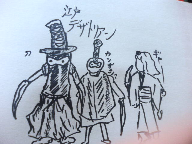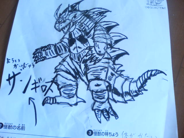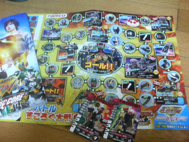 もてないボンクラ高校生(分かるよ)が、有限実行とばかりにヒーロー『キックアス』になって、町のダニどもを一掃……。しないんですな、これが。やはりヘタレはヘタレ、コスプレして気分が高揚してたけど、やはり、どこまでもボンクラ。 チンピラにボコられるサマを動画サイトに投稿されて一躍人気者になり……というお話。 ヒーローの内幕もの、というジャンルは結構ありまして、一芸に秀でた自称ヒーローが、一致団結する『ミステリーメン』とか、自警団気取りのヒーローの末路を描いた『ウォッチメン』とか、巨大ヒーローの日常を描いた『大日本人』とか。 今度はさらにそれを突き詰めて、本当に何のとりえのない、スパイダー星人ガリア(間違い)に出会わなかったピーターパーカーのお話というか、普通の高校生のヒーロー気取り映画。でもそこに映画ならではのファンタジーと申しますか、実は本物のヒーローがいて……というのがこの作品のミソ。親子ヒーロー、ビッグダディとヒットガール、ニコラス・ケイジのビッグダディはいいとしても、問題はヒットガールである。年端も行かぬ女の子が、銃剣類を手に悪党どもをぐちゃぐちゃと殺しまくる! 親子連れヒーローということで、ちらり、と『子連れ狼』を思い出しましたが、この二人は上辺だけでなく、設定も子連れ狼でした。ちゃんと長巻(薙刀のような武器)も使ってたし。 銃剣類マニアのこの狂った親子が、主人公よりもやはり、目立つ、そして肝心のキックアスは、どこまでもボンクラ。それでいい。 キックアス、最初の活躍は町にのチンピラの喧嘩の仲裁。そこで彼は『お前たちじゃなく、これを傍観している人たちに怒っているんだ!』と言う。野次馬たちは誰一人、警察も呼ばず、携帯で動画を撮るだけ。いままでは自分のその一人だった。でも、そこから抜け出そう。でも、抜けたところには……。 あくまでも現実世界のヒーローを描いているためか、暴力描写はリアルで痛々しい。話が進むとその度合いが強くなる。やはりヒーローは不要なのか? いや、でもやるんだよ! と立ち上がれない現実世界。 や、でも面白かったですよ。 これでコスプレ野郎が超能力に目覚めたら『ゼブラーマン』だなあ、とか、いろんなヒーロー映画の要素を思い出し、ニヤニヤとしながら見れる映画です。いかん、時間だ、うちのヒットガールお迎えにいかな! ↑ パンフレット。どう見てもヒットガールが主役。暴力幼児とは、えらい設定だ。 ↑ 大阪では梅田ロフト下のテアトル梅田一館のみ。メンズデーで、久しぶりに立ち見でした。 お向かいのMBSのらいよんちゃんとちちんぷいぷい虫(名前分からん) ↑ セルフで顔出し看板を撮るのは難しい……。 以下ネタばれ含みます この痛快な映画の個人的な欠点は、主人公に彼女が出来ること! ファーストキスの際に一緒に胸をもむ、煩悩丸出しな行動。趣味も彼女に合わせちゃう、最後にゃあヒーロー引退宣言までする。お前の正義感はそれどまりかよ! でもまあ、コミックの中にいるような悪役もいなければ、ヒーローもいない、それが現実さ。それより彼女とチュッチュやってるほうが平和さ、と言いたかったのか。 それでも最後にヒーローは立ち上がる、それが、なんというか、リアルに突き進んだのに、最後は、敵の本拠地に乗り込む方法が『・・・・・3』かよ! と突っ込みたくなった。最後まで地べた這いずり回って欲しかったなあ。 ↑僕の考えた怪獣『よろい怪獣ザンギロス』 アー、もう年末だよ、忘年会シーズンにクリスマス、いろいろイベント多いなあ。 今日は家の掃除して、何事もなく中古300円の『オースティンパワーズ・ゴールドメンバー』でも見てごろごろしようかと思ったのですが、もうすぐ冬休み。『チェブラーシカ』連れてけ、『シュレック』連れてけ、と小さな家人にせがまれているうちにいつの間にか映画を見に行くことになったのでした。じゃあ俺は『キック・アス』が見たかったのですが、梅田で単館公開なので、無理な話、そうこうしているうちに『オーズ、オーズ、オーズ、カモーン!』の大合唱の中、近所のシネコンで 『仮面ライダー×仮面ライダーOOO&W feat.スカルMOVIE大戦CORE』を見てまいりました。や、初日に見ようとはぜんぜん思ってなかったけど、成り行きでこうなってしまいました。 それにしてもタイトルなげえよ! 『冬のWとオーズ』ぐらいでいいじゃないか。 『W編』『オーズ編』『W&オーズ編』に分かれた、3本立てに見せかけ実は一本立てという昔の大蔵怪談映画のような『MOVIE大戦』も去年に続いて二回目。 去年は、ライダー世界を行き来できるディケイドがいたから、よかったものの……。 ↑映画館下のゲーセンで、半券渡すともらえたライダーすごろく。いいねえ、正月映画っぽくて。 以下、ネタばれも含むので、見たくない人はスルーだ。それでは次回で。 別に三話構成にしなくても? と正直思った。まあ、今年だけでライダー映画が5本も公開と