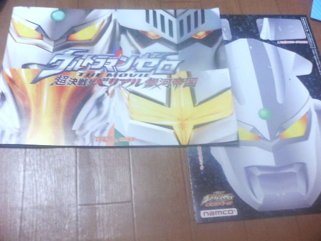 明日はまた仕事だよ! お金かき集めるように働いてるよ! ちなみに、うちにやってきたサンタさんのプレゼント。ちびっ子たちのリクエストにちゃんと答えてくれたらしい。よかったね。でも、アルフはいい、プリキュアもいい、でもなんでアボラスとバニラを欲しがるんだよ! 絶版なんだよ、これ! ということで遊ぶのは、夜勤明けの今日だけ、行くしかない! 先週の『仮面ライダー(等身大変身)』から、『キックアス(アメリカ変身)』『プリキュアミュージカル(少女変身)』と、立て続けに見てきた超人もの、それのトリを務めるのは、やはり、これでしょう、これぞクリスマスプレゼントに相応しい! 『ウルトラマンゼロTHE MOVIE 超決戦ベリアル銀河帝国(巨大変身)』 パンフレットとおなじみ、ゲーセンで半券を見せるともらえるなりきりお面。ナムコさんは、すごろくとかお面とか、実にそれらしいおまけを夭死してくれるなあ。 表紙は主要キャラ四人がぎゅうぎゅうに詰まっているが 裏表紙はカイザーベリアル陛下が悠々と独占しているでございます。 仕事が明け、子供たちの準備を済ませ、最寄り駅でソラノ君を引っ掛け、車中でなぜか平成ライダー反省会になり、映画館で八薙君と合流。ボンクラと子供、ウルトラに選ばれたものが、その最新作を見る。ちなみに、映画館のあるショッピングセンターアリオ鳳では、その日、瀬戸康史(仮面ライダーキバ)のサイン会が、広場ではささきいさおのミニコンサートが行われていたという……。どんな日だ、クリスマスだ。 さて、映画はといえば……。 野暮は言わない。 愛に溢れた映画。 それも登場人物が愛を語るのではない、作り手のウルトラ、いや円谷、いやいやヒーローというものに対するまっすぐな愛情で溢れかえった映画になっていた。前作にあった『見たことのないウルトラ』をさらに推し進め、まとめた感じ。 そしてウルトラマンゼロという今までにないタイプのはねっかえりキャラを創造することで、今後のウルトラの新たな方向性を模索する作品にもなっていた。 ウルトラであってウルトラでない感じ……。それは新キャラのジャンボット、ミラーナイト、グレンファイヤーの存在が大きい。かつての円谷ヒーローのリメイク、単なるおっさんを喜ばせる道具に終わっておらず、それぞれがきちんとキャラクターとして成立しており、今後の活躍が見たい、と思わせてくれる。 見るべし。 動きでは負けるが、艦隊&ロボ戦はヤマトにも引けを取ってないぜ。 何よりも『戦艦の上にまたがる怪獣』というビジュアルはばかばかしくもどこの誰もやっていなかったので、新鮮だ。 あと、個人的には、映画の端々から、石川賢漫画の雰囲気が感じられたのだが、多分、それは気のせいだろう。 見るべし。宇宙はでかい。 ソラノ君にクリスマスプレゼントでもらったウルトラゼロアイ。 光る、なる、変形する、男の三大欲求を満たしたコンパクトな優れものおもちゃ。鑑賞後の感想会(反省会に非ず)でも大活躍。