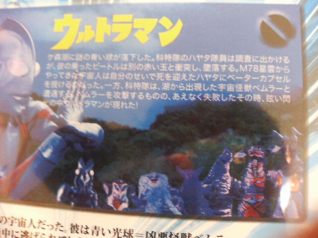 これは、いつか人生のどこかで使ってみたいせりふの一つなのですが(どこに使うかは未定)。 引用元の映画『GONIN』 崖っぷちの男五人がやくざの資金源を強奪して……という、やるせない映画です。 写真は中国(香港)版のDVD。 枚方のブクオフにて購入。香港映画だと思ったら、よく知っている映画でした。 パッケージに書かれた『烏合之5』と言う言葉が、内容を物語っておりますな。 で、今さっき届いた商品 ウルトラマン? しかも横にいるのはセブンxと見知らぬ怪獣。 あんた事務所違うでしょうが! そしてうっすらと『帰ってきたウルトラマン』の怪獣ゴーストロンが。 タイトルの下にある『重返地球』。『地球に帰ってきた』と言う意味です。そう、これはその怪しげなパッケージDVDは『帰ってきたウルトラマン』の台湾版でした。 全51話を二枚のディスクにぎゅうぎゅうに詰め込見、オープニングの後延々本編だけという代物!まあ、画像もちょっとアレだけど、安かったので仕方ない。 その裏面。どう見ても初代と勘違いするよ。 サブタイトル。よく読めば『新マン』のものだと分かる。 しかし、これ、限りなくパチものに近いが、円谷の商標がないんだなあ。バーコードはあるのに。大丈夫か? 昨日は、京都に住む知人家族と一緒に京都国際マンガミュージアムに行ってきました。入場料払えば、一日中マンガ読み放題と言う施設ですが、お目当ては特別展示の『フィギュアの系譜』で、土偶や雛人形から現代に繋がるフィギュアの歴史を、海洋堂バックアップでコンパクトにまとめたものです。 ショーケースにずらり並んだ怪獣たち! かつて『宇宙船』ぐらいでしか見たことなかったりあるホビーサイズのキンゴジや、モスゴジ、それにメガソフビのライダー、キカイダー。もちろん、美少女をはじめとするその他フィギュアも展示してありましたが、かつてガレキ=怪獣だった時代があったんだよ! 展示を見終わり、マンガでも読んで時間をつぶすかと思ったのですが、やたらと大きなカバンを持ってくるお客さんが多い。何事かと思えば、その日は『コスプレ交流会』で、大勢のレイヤーさんが様々なコスで、館内をうろつき、中庭に出ては撮影会を行っておりました。 最近のコスプレさんはごついカメラはもちろん、レフ版も自前で持ってきておるんですな。 中庭でコーヒー飲みつつ、そんなコスプレさんたちを見ては 『アレは(多分)ヘタリアだ!』 『アレは(恐らく)バクマン!』 『アレはどう見ても真田幸村!』 と、一人元ネタを当てておりました。 鏡音リンと坂田銀時が多かったですなあ。 キュアサンシャインもいましたが、変に声を掛けるとしばかれそうなので、やめておきました。 イナズマイレブンさんたちは仲良くみんなでお弁当を食べたりしながら談笑してましたが、最後までサッカーはしませんでした。 『おたく何のキャラですか?』と聞くのもなんだし、知らないキャラも多く、最近の事情にまったく疎いことを思い知らされました。 で、撮った写真が 中の人は、喫煙室で着ぐるみへの熱き思いを語ってくれました。 いろんな人がいましたが、一番はテリーマン(私服)でした。ちゃんと額に『米』のマークまで。 聞けば、そのレイヤーさんは他にもブロッケンジュニアやジェイドなど、キン肉マンネタをやっておられるとのこと。女性なのに、偉いなあ。 芝生で寝そべるバラゴン。 マンガミュージアムを離れ、次は京都の路面電車、嵐電に乗るため、大宮へ。 ただのチンチン電車ではなく、このシーズン嵐電は『妖怪電車』を運行しているのです。 切符を買い、ブラックライトの光る怪しい車内へ。 いた、妖怪が! この電車、妖怪と一緒に終点の嵐山に向かうというもので、しかもノンストップ! 子供は泣き叫び、まさに『ゾンビ特急地獄行き』の様相。 これ、絶対トラウマになるわなあ。 不鮮明ですが、子供に容赦のない造形のお化けたち。ちなみに妖怪の格好をしていけば、運賃は50円です。 道中、やたらと外にカメラを持った人が多いと思ったら、車体に鬼太郎一家のイラストが描いてあったからでした。 猫娘が今風な感じ。 アニメ、ゲームキャラから、妖怪まで、京都の休日はコスプレ尽くしでした。 で、マンガミュージアムで読んだのは島本和彦の『ウルトラマンG』だけでした。 |