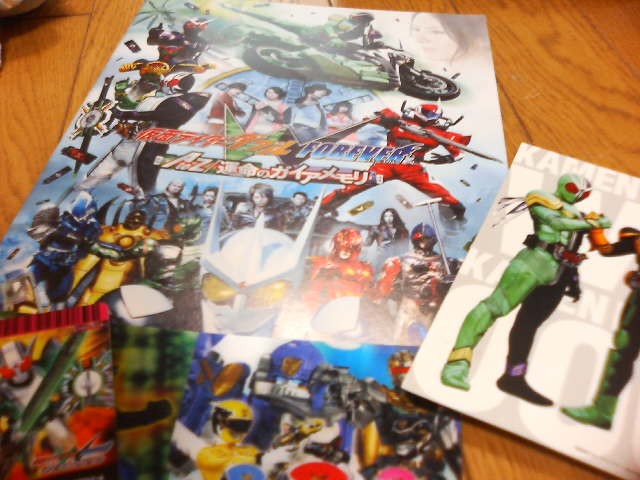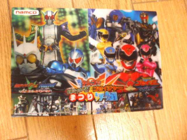 ゲーセンで、サイクロンジョーカーのビッグソフビを取れなかった……もうすぐ終わるというのに、立体物(おもちゃ)がほしくなる……。『仮面ライダーW Forever AtoZ運命のガイアメモリ』(長い)は、そんな映画でした。 改めまして仮面ライダーWはカッコよかったんだ、と同時にそのシンプルな造形だけでなく、分からないように随所に『一号辺りの仮面ライダーらしさ』が見え隠れする作品だったんですな。 テレビシリーズとリンクした劇場版は、お祭り騒ぎに走らず(サービスシーンは多いですが)、テレビのパワーアップ版という赴きで、『尺が足りねえ、でも満足』な内容でありました。 強いだけではなく、ふてぶてしいまでの悪役仮面ライダーエターナル。まさに強敵。そんな相手にどう倒すのか?これがもう、なんかいい感じに古い演出だけど盛り上がるんですな。いや、ラストのアレでジーンときました。ライダーって『風』なんだなあ。 あと、悪役の元格闘家、須藤元気。ごつい体でオネえキャラを演じ、ボス核のエターナル、いや主役をも食わん勢いでした。 あれは須藤元気の映画です。ライダーというより、オネエ言葉で触手をぶん回す須藤演じるルナドーパントは『コミカルで強い』キカイダーのダーク破壊部隊を思い出しました。 その他。 ◎杉本彩はウルトラに出ても、ライダーに出てもなんかやらかしてくれるなあ。 ◎新ライダーの登場は唐突ですが『ライダーは助け合いでしょ』という台詞は数々の平成ライダーに聞かせてやりたい。 ◎いまさら思ったのですが、情報屋の皆さんはどこまでも『情報屋』であり、『実は……』という今風の設定がないのが好感持てます。 あぁ、面白かったなあ、ダブル。 え、来週で最終回? あ、あと同時上映の『護星戦隊ゴセイジャーエピックON THE MOVIE』もみました。こっちはもっとお祭り騒ぎでもよかったのに。 二本とも 『あいつは倒したはずの……』的な台詞がありましたな。劇場版=再生怪人は鉄板ですな。Wの新怪人揃い踏みもぞくぞくしましたがね。どっちでもいいのかよ。 入場者プレゼントのカードと絵葉書。新旧ヒーローががっちり握手の画はいつ見てもいいねえ。 劇場の半券を持ってゲーセンにいくともらえる、立体カード。 『保険利かないからさ、うちらの仕事……上乗せしてもらわないと』