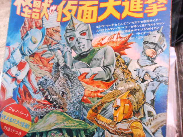 × [PR]上記の広告は3ヶ月以上新規記事投稿のないブログに表示されています。新しい記事を書く事で広告が消えます。 某月某日。東京某所、とある企画会議の席。 表紙には『○○○』とあり、○の中に今後の会議で決まるであろう名称が入る予定だった。 かくしてふとした一言で、新番組のタイトルが決まり、会議はスムーズに進んだのであった。 というのは、まったくの想像ですが。 古臭いということでこれ。 しかし、ジャケットは怪獣ばかりで少しも人の溜息が聞こえてこない、じゃない、『仮面』成分が足りない、と思われるでしょうがそんなことはございません。裏面に