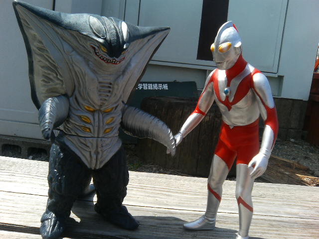 家庭の事情で日曜日は遊ばないといけないのですが、困ったとき、お金のない時は公園でぶらーとするのが一番ですな。でも木陰はまだ寒いなあ、どうしたんだ、今年は。 この人の中ではフリマ=ソフビになっているらしい。いつもダンボールに入った怪獣ばっかり物色していやがる。 そんな中、なぜいまさらウルトラマンってベタ中のベタなもの買ってるのよ! その横顔。ウルトラマンたちの口は四角い、というイメージがあるが、初期はこうして地球人のように口が動く、『唇』のようにデザインされていたことが分かる。知ってても自慢できませんが。 『おっちゃん、これナンボ(オーナー、これ一括でいいかな? の意味)』