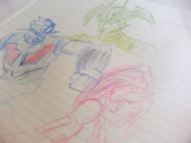 仕事をキャンセルし、妻と交代で付き添い。あたりまえだが病院は暇だ。 暇なので、本を読んだり、落書きしたり、ベッドで昼寝したり……。 プロットを書いてみたり。入院の間に、またもやネタが没ったので、更なる飛躍と、いい加減人の言う事を聞こうと思った。でも言うとおりにしたら(以下略)。 夜は残った子供の世話、といいつつ、みんなでビデオを見て眠るという自堕落な生活。 ◎入院も急だったが、退院も。昨日いきなりの外泊告知。慌てて荷物をまとめる。ちょうど長男の誕生日だったのでタイミングがいいといえば、いい。 が、その日。 遊びに出かけた長男が事故に遭った。 警察からの電話を取るのって怖いねえ。 自転車で飛び出したら、バイクにはねられたらしい。 誕生日に救急車に乗れるというサプライズなプレゼント! しかし、本人は眠っていたそうな。 幸い、腕のかすり傷ですんで、本人はけろりとしながら誕生日を済ませたのだが、救急の諸経費やら、事件扱いで警察の現場検証などが待っていいるのだ。気が重い。 ◎そんな中、朝っぱらのテレビから『チェンジ・ザボーガー!』と威勢のいい声が。噂の電人ザボーガーのリメイクが決まったそうで、楽しみ。 かと思えば、キカイダー01の池田俊介さんの訃報を聞く。まだお若いのに。 何が起こるかわからない、人事のようだが、現に我が家も色んなことが立て続けに起こったものなあ。まるで何かに呪われているようだ。 ◎そんな今日。一応、何もかもひと段落。ぐちゃぐちゃと予定が狂いまくり、週末の友人たちとの予定も結局いけずになってしまったので、家族で『アイアンマン2』を見に行く。 ロボ好き、メカ好き、必見! 始まったばかりなので、これ以上は言わない! 日本人としては仮面のヒーローがガキンガキンと戦うとなんだか安心するのだなあ。 エンドクレジットは最後まで見ること、吹き替え版は登場キャラにいちいち名前とポジションのテロップが出るのでうざいよ! 『トニースターク・社長、副業アイアンマン』とか。テレビか。 来週はいいことが起きますように。 ↑入院(付き添い)の最中暇に任せて書いた落書き。娘思いだ。 PR