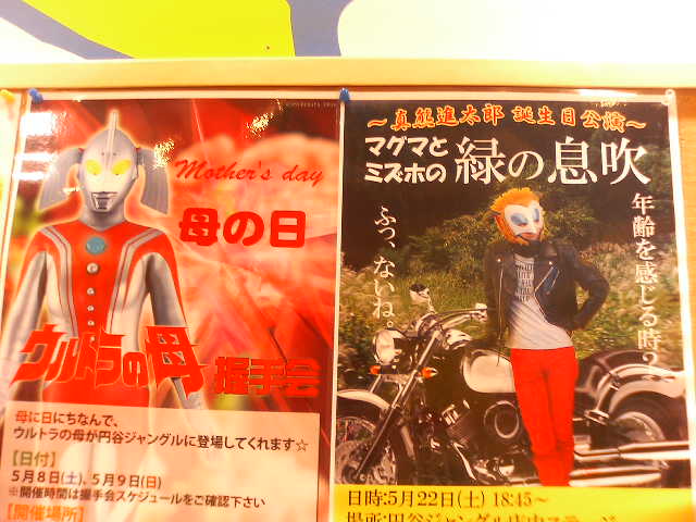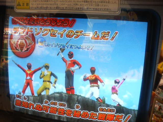 動物愛する俺は、畑の持ち主の許可をいただき、はさみで子猫を救出。助けてやってるのに、あいつらは噛むは、引っかくわで、網から出られると、さっさといなくなった。手のひらサイズの子猫だったが、今夜あたり恩返しにこないだろうかね。と思った時点で俺の負けだ。 昨日、『ダイスオー』をはじめてやってみる。というか、ちっびこがやっているのを後ろから見てみた。要するに仮面ライダーガンバライドの戦隊版、団体戦版だ。 五人づつ戦隊ヒーローをチョイスし、戦わせるのだが。 赤三人に、ピンク、イエローって『ゴレンジャイ』だったら確実にどくろ怪人(浜田雅功)に説教されると思う。 最後に いつの間に、えらくなったの、マグマ星人? あ、今日母の日だった。 おかーさーん はい、前回とほぼ同じ内容なので、御用とお急ぎでない方だけ。