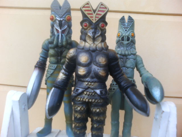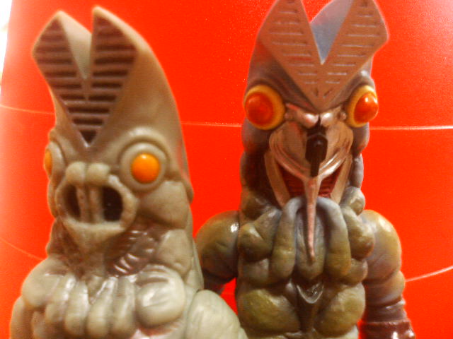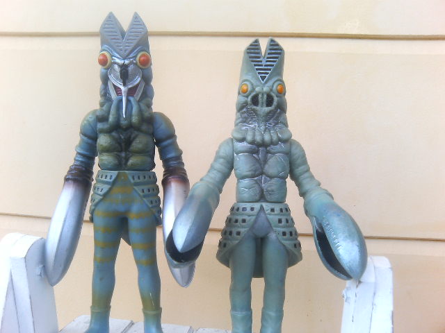 地球人のわれわれだって一人ずつ顔つきが違うのだ、宇宙人だって個人差ぐらいはあるだろう。と、エイリアンさんは厳密に言えば『宇宙人』ではなく『宇宙生物』なので、目立った個体差がなくてもいいのか、と書いていて気づいた。ネタこじつけるのに失敗した! 日本の有名な宇宙人、バルタン星人。かつて買い逃してしまったためにオークションで格安にて購入した物です。またバルタンかよ! いや、よく見てほしい。どこか違う。