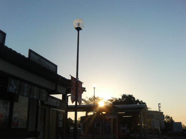 土曜日。午後で仕事を追え、家へ。映画『クレヨンしんちゃん・超時空!嵐を呼ぶオラの花嫁』を見に行く。太陽の光を失った未来は電気屋が牛耳っているという設定がストレートすぎて面白い。しかし、永遠の五歳児であるしんちゃんとその仲間の未来を描くってことはある意味禁じ手ではないかな? とも思う。映画は面白い。しかし、俺の頭の中ではチケット購入後落としたお金のことで頭がいっぱいだった。 幻の1903年版と1915年の『不思議の国のアリス』を紹介した一冊。原作の挿絵に忠実なキャラが登場する03年版が見たい。 あ、八薙玉造先生の神剣、もとい新刊『神剣アオイ2・おさななじみと黒猫メイド』もいただきました、ありがとうございます。 このときのパーティーでは、俺はノンアルコール。ジンジャーエールとオレンジジュースをひたすら飲んで、酔ったようにハイテンションになっていた。なぜ飲まなかった? そう、それこそがその日のメインイベント、深夜の地獄ドライブのためだからだ! 深夜の山陽道をひたすら走る俺。山道で、明かりもない。ガードレールにつけられた小さな反射板と、先を行く車のテールランプだけが頼りだ。岡山県は広い。行けども行けども岡山県だ(当たり前だ)。睡魔が徐々に襲ってくるので場所を変えつつ、二時間ほど仮眠。起きると朝日が昇っていた。 これは広島・福山インターでの朝焼け。福山市といえば、ベロクロン。 広島市をまずは素通りし、廿日市市へ。 拙作で滅茶苦茶にした土地、宮島へ。