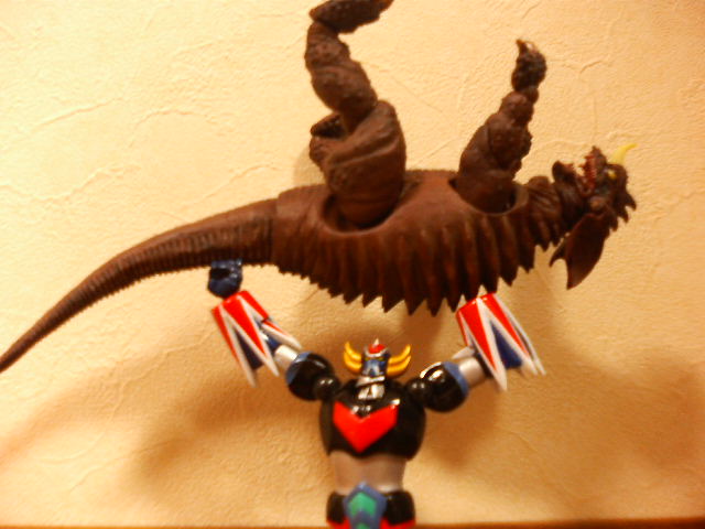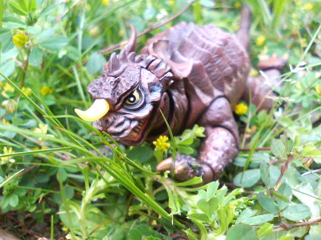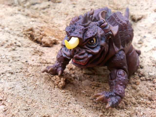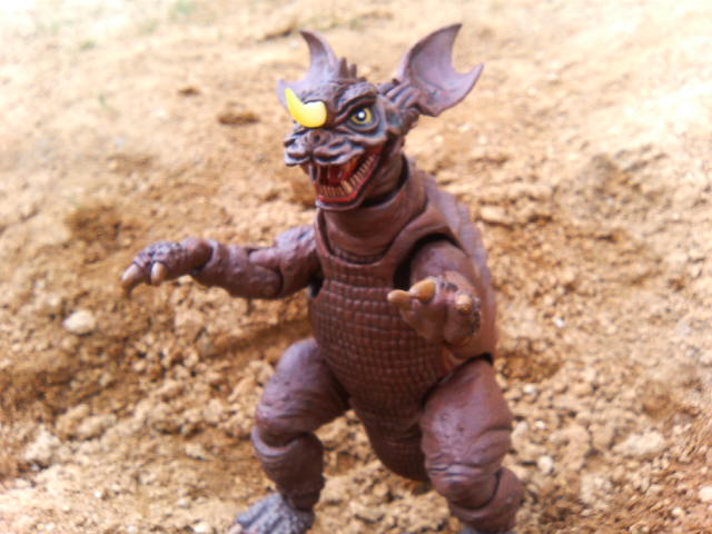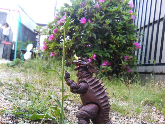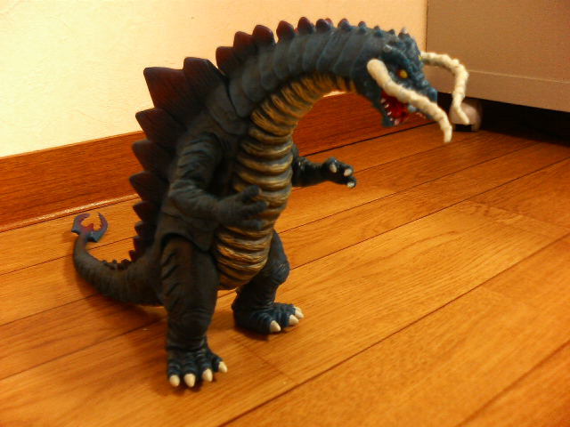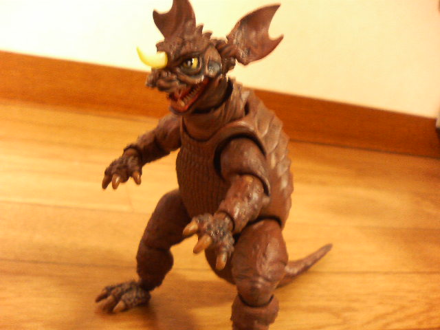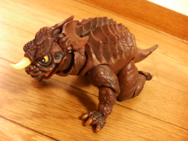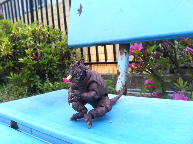 某ネット呟き場所でも書いたのですが、特撮リボルテック・バラゴン、こいつでご飯30杯はいける! 普通おもちゃというもの、特にフィギュアというものは箱から出したとたんに魔法が解けて『あぁ、こんなものですね……』と一通り遊んでハイそれまで、箱にしまうとかする ということで、書を捨てて街に出て、バラゴンで遊んでみた。