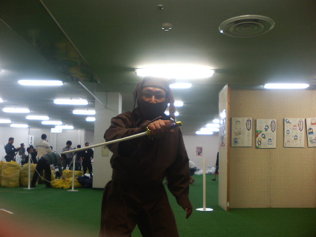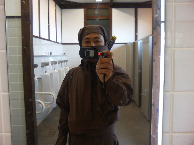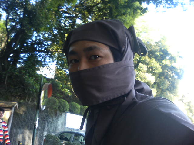 家族で来たはずなのに、誰も俺の写真を撮ってくれないので、すべてセルフで。 伊賀は城下町で、普段は静かだろうな、という印象。 俺もある外人さんに呼び止められて『息子さんが私を刺しているところを写真に撮ってください』と頼まれた。 城の中にある忍者屋敷に向かい、くのいちのお姉さんから屋敷の説明を受けてから資料館の展示を拝見。分かっていたけど、実際の忍者 は地味だったんだなあ。ひょっとしたら一生忍者服に袖を通さず、手裏剣にも触れずに生涯を終えた忍者もいたんじゃないだろうか、とぼ んやり考えながら、レンタル忍者服の返却時間が迫ってきたので、慌てて着替え、途中で山中の温泉に使って、帰路に着いた。 伊勢をまわらなければ、枚方からだと、高速を使わずに一時間弱でいけるのでまた来ようかな、と思った。今度は忍者一家で。