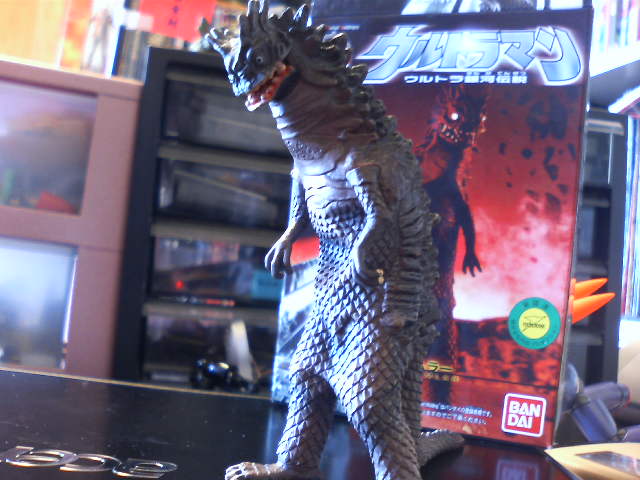 『じゃあ、そいつは自分の願望どおりに被害者をバラしたのか?』 という話からねじくれて上記のようなことになった次第。 俺は『自分の描いた絵ではできない』と思ったが、結構できる人が多いらしいとのこと。たとえば、自分がエロ小説を書いてそれでいたせるかといえばムヅカシイもんなあ。 たとえば反転コピーして『ちょっと自分の絵と違う』ようにすれば客観的にいたせるのでは? とか。 ナルシシストが多いといわれているボディビルダーがもし同性愛者だったとして、自分の鍛えられたボディでいたせるのか? とか。 というかあまりにもお下品な内容でした。女子は目をつぶって読んでください。 じゃあ、下ネタから転じていつも通り怪獣の話でもしましょうか。 ザボーガー映画化を受けて、にわかピープロブームである。またぞろ関連書籍を読んでみたり、動画サイトでスペクトルマンや風雲ライオン丸を見てみたり。やっぱり駄目だ、ディスプレイの小さな画面じゃ見た気にならない。DVD欲しいけど高いなー。でも多分に『思いでフィルター』がかかっているので、今見たら結構アレだったりして全話はきついかなー。だからこその再放送ですよ。 そんな中、噂に聞く暗さの『風雲ライオン丸』の中でも最も鬱展開な19話『よみがえれ弾丸(ロケット)変身』を見る。 強大な敵の前に戦意喪失した主人公が物語の大半近く彷徨うだけ。 『どこまで行きたいんだ……俺は』 『このまま死んでしまおうか……』など、心の声を字幕で表すアバンギャルドさ。平成ライダーでもそこまでやらんし、当時やっちゃったんだから見ていたちびっ子のショックや大きいと思う。 彷徨いながら主人公は倒れ、ヒロインと浜辺でウフフアハハとじゃれあう夢を見る。ニヒルな主人公もただの若者だったわけだが、その落差が激しすぎる。 敵も戦う気力のない主人公にさじを投げる。 『まあ、変身できそうだったら来てよ』(意訳)と敵に言われる正義の味方! パロディでもコメディでもなく、いたって大まじめ。 結局主人公はヒロインの励ましによって恐怖を克服し、見事ロケット変身して、敵を撃つのだが、ものすごく後味悪い。 毎回こんなのじゃあ、そりゃ2クールで打ち切られるわな。でも見たいな、風雲ライオン丸。 ロケットでわざわざ飛び上がって変身ってかっこいいじゃないですか。 あー、何度も言うけど変身時代劇をやってくれい! もう、俺がやる! では、猛烈にカッコよく切ないライオン丸の主題歌をどうぞ。 ↑仕事帰りに捕獲したベムラー。これはウルトラマンの怪獣。新作映画の冒頭でメビウスと戦ったことによりリリース。 食玩創絶シリーズの一つなのだが、ガレキ並み、というか着ぐるみをそのままミニチュア化したような出来栄え。コレのカネゴンとかパンドンとか買い逃したことを激しく後悔。 え、リージョン1のアイアンキング、全話で1500円切るの? 樋口監督の怪獣ものってテレビドラマなの?