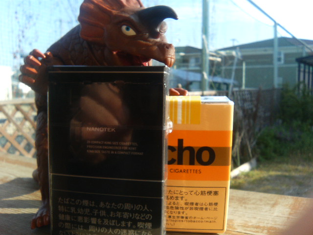 『月亭八光、八方の息子だ!』 関西の人でウルトラ映画見てないと分からんようなことを。 今日はクリスマスイブですよ。 イエスキリストの誕生日をみんなでケーキ食ったりご馳走食ったり酒飲んだり、いちゃいちゃする日ですな。それはさておき、サンタクロースっているのでしょうか。俺、結構『マジンガーZのジェットスクランダーのほうが欲しい』と口に出しているのですが、果たして、その思い届くかどうか。 そんな今日、来年のために原稿を書いて送って、イブの日なのでトイザラスを覗いてみると、やはり、というかなんと言うか仮面ライダーWのコーナーは壊滅状態。関連商品で言えば、スカルのソフビしか残っていない状態でしたよ。 そういえば今朝の『とくダネ!』で『今年のヒット商品』特集をやっていて出演者も個人的な今年のヒット商品を上げていたのですが、みんな家電やファッションを取り上げているのに笠井アナだけは一人『仮面ライダーW・デラックスリボルギャリー』を推してましたね。今年のプレゼントでしょうか、果たして無事確保できたのでしょうか、笠井アナ。 おそらく明日の朝 『サンタさん、間違えてディケイドのベルト持ってきたー』 『サンタさん、間違えて何を思ってかアギトのベルト持ってきたー』 『ダイゴヨウいらんー』 と泣き叫ぶ子供と 『ライダーのベルトやったら何でもええヤンか! 返品するよ!』 と声を張り上げる母親との壮絶な戦いが各地で見られそうです。 さて。仕事あけて家に帰ってくると Wドライバーが! 駅前のカルフールにはあったそうだ! 『~そうだ』って何で伝聞形。 おぉ、これが品薄薄々のライダーベルトかぁ! ガイアメモリをぶち込むと威勢のいい碇ゲンドウの声で『サイクロン!』『ジョーカー!』と叫ぶ、光る! メモリの挿し順間違えるとユニゾンで叫ぶぞ! 巻いてみるの図。子供用なので、巻けません。ベルト通しに通して何とか。 あぁ畜生。変身アイテムを身に付けるとわくわくするなあ、あぁ畜生。 二人が一人になって戦う仮面ライダーWは、思えば今俺のおかれてる現状に似ているのだよ。そう二人いないと始まらないんだよ。そういうことにしておこう。縁起物だと思っておこう。 『さあ、お前の罪を数えろ』 色々あって、もう……。 今年のOOTY(おもちゃオブザイヤーの略)のアギラさんもうかうかしてられません、これは楽しいおもちゃです。が、鳴らしすぎると 『ヒーーーートォ!』『ルナァ!』『マキシマムドライブ!』とうるせえぞ、立木! ということになりますが、まあ、今日ぐらいにぎやかなのもいいでしょうね。 ありがとうサンタさん、おかげで俺は食玩ガイアメモリやガチャガチャガイアメモリを探す旅に出ないといけなくなりました。 イバラの道です。なるほど、これが『悪魔と相乗りする』ということか。 メリークリスマス、ミスターローレンス。 昨日の試供品タバコ。やっぱり細かったです。 おはようございます、早寝早起き、なかなかみんなと時間が合わない男でございます。 今日は全国的に祝日だけど、俺は昼から仕事だよぉ。 無線ランが職場でも出来たらなあ。無線ランアダプタという変なUSBメモリをもらったけど、挿しても何にもならんのよ。俺の使い方が悪い? USBメモリといえば、お父さんが仕事で使うUSBを首や腕に挿してドーパントごっこに興じるちびっ子が増えているとか。 大体クリスマスの前日に祝日って流通止まるわ、買い物客増えるわで、小売店は大変なんだよぉ、とくにおもちゃ屋は。まあ、それなりの対策は練ってるでしょうが。 そんな前振りとは関係なく、近所のタバコ屋でいつもの銘柄を買ったら、試供品をくれました。来年発売する新商品のサンプルだそうです。 サンプルといっても一本二本じゃなくって、ちゃんと箱の中にびっちり20本入ってるんですな。 これがJTの新しい力、ケント・ナノテック! 『~テック』とつくと、何か、最先端の匂いがしますねえ、リボルテックとか多摩テックとか。 テックセッター! それにこのタバコ、薄いのですね。↓いつも吸ってるエコーの約半分! しかも同じ量! おもちゃオブザイヤー2009のアギラさんと比べてもその薄さがお分かりになると思います。 またアギラかよ! ということで、タバコ増税だ何だといわれてるのに、あえてタバコのお話でした。でも中身はパック牛乳のストロー並みの細さなんでしょうね。