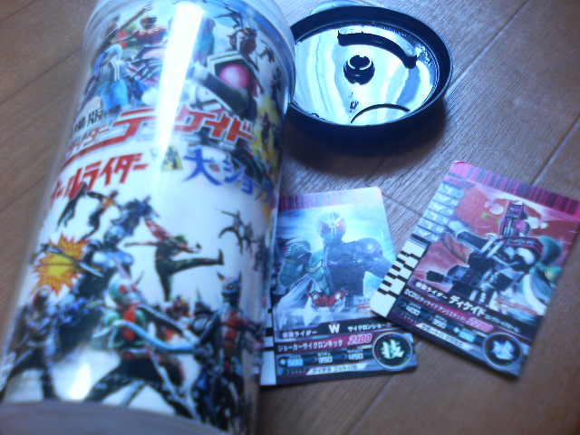 × [PR]上記の広告は3ヶ月以上新規記事投稿のないブログに表示されています。新しい記事を書く事で広告が消えます。 チンポジ。 録画したM-1を見ながら書いてるんですがね。トリジン。 何の予定もないはずがばたばたした週末のトリを飾るのは……。 今朝のこと。家族の保険証や診察券が入ったポーチがないことに気づく。昨日はあったはず、と車や部屋を綺麗に掃除しても出てこない。これはもしやどこかで落としたのでは……。ということで、昨日行った場所を思い出してみる。再び昨日通った道を走ることになってしまう。 最初に寄ったコンビニで、あっさりと落し物が見つかる。が、モニターの中での話。こちの話を聞いて心配して防犯カメラでチェックしてくれたのだが、その中でばっちり俺がポーチを落とし、そのあと来た車の乗員が拾って持っていったのだ。普通拾ったらコンビニに届けねえか? これってやっぱり金目のもの目当てで……という俺の言葉にうなずいてくれる店員さん。恋の予感だ。保険証と診察券だけなので悪用されないものの、ぽいと捨てられる可能性も大だ。 とりあえず、警察に紛失届けを出し、もう何もしたくねえ、と家に帰り、M-1敗者復活戦を見ていたのだが。 お隣のT市の警察から連絡があり、昨日の人たちがわざわざ届けてくださったとのこと。アー、よかった、助かった。実はいい人だったんだ。ごめんなさい、家族そろって(そして店員さんも)いろいろ疑ったりして! 感謝です! というわけで、気を取り直してみんなで映画へ行こうということになったのですが、本命のカールじいさんは終わっていたので、最終回の……ええ、これ何と読むの? 『仮面ライダー×仮面ライダー・W&ディケイドMOVIE大戦2010』 を滑り込みセーフで鑑賞。 結局これって東映マークが四つ出るけど、映倫マークは一つなんで、二本立て、もしくは三本立てに見立てた一本立てなのね。昔の大蔵怪談のようだ。 筋立てはディケイド最終回とWのエピソード、それと二人が競演のパートの三つからなってます。 エー、いろいろ言われてたデケイドのほうは『まあ、大体分かった』って感じですか。 デケイドにアレがないって言う台詞でぷっと吹き、『お前は何なんだー!』って台詞に『そりゃこっちが言いたいよ』と思ったり。何だ結構楽しいじゃんかよー。 冒頭の、夏のオールライダーの残りカス的な導入部から、死んだり生き返ったり、またショッカーだったり、最後に『はあ、そうですか。じゃあ、今までのは?』というオチまでいろいろと忙しゅうございました。 でも電波人間タックル(胸と腿)と夏みかん(足)はよかったよ。蜂女ももっと露出があったらなあ。 まあ、そんなことぐじゃぐじゃ言わんと、後半はお楽しみ、待ってましたの怪人軍団対平成オールライダーの乱戦ですよ。 ザンジオー、毒トカゲ男、昼カメレオン、ジャガーマン、と昭和怪人混ざってさーでもやっぱり扱い悪いよなー。戦闘員並みだよなー、やっぱり。 まあ『写真撮られたら魂抜かれる』の逆ですね。 パラレル設定をぐちゃぐちゃにしたから何でもありになったなあ、でもそれがデケイドの特徴になっちゃったんだけど、この設定があとのWでいい味出してました。 で、Wは、今日テレビで見た戦闘員さんと新フォーム登場、ライバルライダー、誕生の秘密を盛りだくさんで、見所多く、ちゃんと本編の一話としても楽しめる内容でしたね。相違や、Wってちゃんとライダーの名に相応しくバイクチェイスやバイクバトルのシーンがきちんと描かれてるなあ。 最後は二人が共闘して……。 見終わって、思い出した。 『クリスマスのお面プレゼント、正月のステッカープレゼントがあった!』 というわけで、↑ノーマルな入場者プレゼントの下敷きとカード。 帰りに件のコンビニに行って店員さんに保険証が見つかった報告とお礼。 『え、それって誰かが捨てたのを別の人が拾って?』 違います。そしてこの二人の出会いが恋に発展することはないな、と思った。 笑い飯は炒飯になりました。 PR