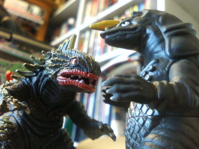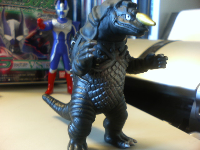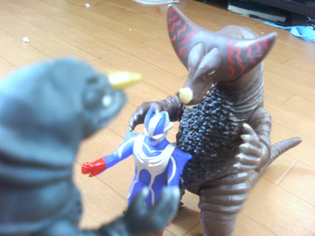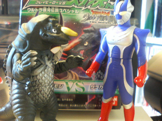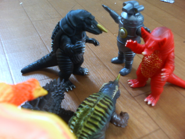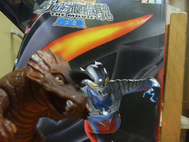 しかも今日、寒かったし、イングロターズ見逃したし。 タイトル通り、ごちゃごちゃと用事を済ませた一日でしたが、全部一条通沿いですんだんですな。 今日は一条通沿いの教室で講習の後、一条通沿いの病院で健康診断に行って、いつものように、血を抜いたり、身長体重計ったり。総合的に『年相応』だったので、よしとするか。一昨年は『肺に影』去年は『白血球が少ない』と言われましたので、今年はなんと言われるか。それでも、生きている。 健康診断を終え、さて帰ろうかと思ったら今年は体力測定があった。 腹筋、腕立て、踏み台昇降……。へとへとになったけどやっぱり『年相応』だとさ。握力は女子並みに弱いのさ。後、体はダイヤモンドのように固いので、前屈はマイナスだよ。 『何? その程度なの? それでも介護関係者?』とか言いながら自分もうっすらと、それでいて下着のラインが見えるくらいの汗かいてるジャージ姿の女子なんかがいたらもっと奮起したのに、いやしないのさ、そんな人。踏み台昇降対決しながらよろけて倒れかかって来るパターンのやつな。飲んでます、ハイボール。 その後、家人を一条通沿いの病院に送り届け、やっと用事を済ませたので、飯でも食うかと一条通沿いのダイエーに立ち寄りました。普段は行かないけど、ウェンディーズが今年いっぱいなので、久しぶりに寄ってみたのです。ハンバーガー普通に売ってました。 でもラーメン食った。いや、家人の欲しがった『ジャガイモ丸ごとにチーズとベーコン乗せた奴』がなかったもので。 しかし……超ローカルな話題ですが、いつ潰れるかと思った鳳ウィングスも息が長いなあ。 何年ぶりだろうか? しかし、すっかり内装が変わっていて、二階にあったおもちゃ屋もCD屋もなかった。結構マニアーな品揃えのおもちゃ屋だったのに。ファンシーなお店ばかりになっていた。 スガキヤ横の本屋は健在だったので。 ↑ちびっ子もでかっ子も大満足、主要キャラは三面写真で必ず紹介する小学館のおなじみのシリーズ『大怪獣バトル・ウルトラ銀河伝説超全集』を購入。結局この話かよ! それほどまでにすごかったのよ、あの映画は。見てない人は見るように。 いやあ、まさかラストのあれの詳細な記録が載っているとは驚きだ。ソフビ買うかなー。 さすが超全集、痒いところに手が届く編集で満足でしたよ。 今夜のスマステもいい感じでしたね。タロウばっかり注目されてましたが、よし。ロンブー亮がやたらと詳しかったので、驚いた。 と言うことで、今日も酒をなめつつ、カプセル怪獣のソフビを愛でておりますよ。 アギラいいなあ、昭和の名獣だなあ。その眠そうな顔。 と、言うことでくどいぐらいにやってるM1特番を見つつ、寝るか。 MISIAの新曲で『大怪獣バトル・ウルトラ銀河伝説』の主題歌『星のように……』はいい歌ですよ。まだ買ってないけど。 何だ、シングル一枚ぐらい怪獣ソフビ二個我慢したら買えるぜ。でも怪獣ソフビ二個を買ってしまうんだなあ。 ということで、はい。食玩対決セットの『レイモン対ザラガス』を買ってまいりましたよ。あぁ、映画もう一回見たいけど、デケイドも気になるし、イングロリアスバスターズは今週で終わるし……。 もう全編戦いっぱなしなので、もう一回見て細かいところを見直さないと! レイモンは『大怪獣バトル』の主人公の怪獣使い。ウルトラ面してるけど、等身大で巨大化はしない。 ザラガスは、今回の映画でまさかの復活を遂げ、ゴモラと戦った変身怪獣ですね。そう、このザラガス、もともとはゴモラの着ぐるみ改造の怪獣なのですよ、いうなれば佐山サトル対初代タイガーマスクみたいなものか。 ほら、腕とか足の感じがそっくりでしょ? もともと同じものだから。 同門ならぬ、同体対決! なぜこいつを800円ソフビで出さない! ゴモラと戦わせたいじゃないか! 何で来月はサラマンドラなんだよ、先にこいつだろうが!それだったら初代ドラコも出せよ! と映画見ないと分からないぼやきを吐きつつ、結局食玩で妥協してしまうんだよなあ。 ウルトラの父の若い頃とゼロテクターも食玩どまりかよ。いや、ヒーローは優遇されそうだから限定で出そうだにぃ。 手元にあったゲスラと絡めてみる。 普通サイズのゴモラとレイモン。 『いけ、ゴモラ!』 『ぴしゃあああぼおおおう!』 ゴモラとザラガス! さらには赤くなったゴモラに加勢するリトラ、セブンガー! 映画でウルトラマンとちょっと絡んだ(!)マグラと同じ着ぐるみ(バラゴン)改造のネロンガがザラガスの応援に来た! って、昼間っからいい大人のやることではない。でもこれからまた仕事だぁ。 これぐらいいいだろう、とウルトラマンメビウス『故郷のない男』をみながら思った。 最後に アギラの顔面は、左右で造形が違う。これってソフビ成型のときにこうなったのか、元がそうだったからか? 後者だと、すげえぜ、バンダイ。 というか、当時の着ぐるみのまんま作った品田冬樹氏がすごいのか。