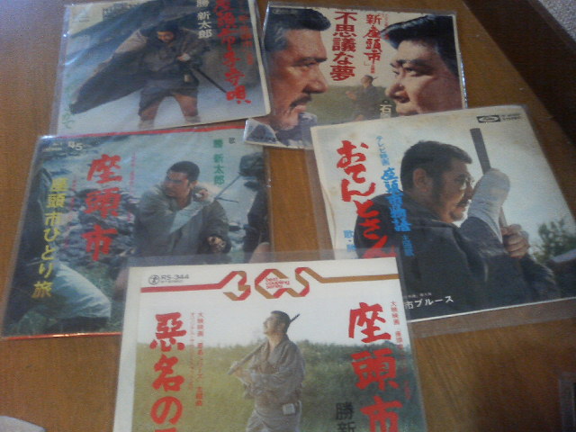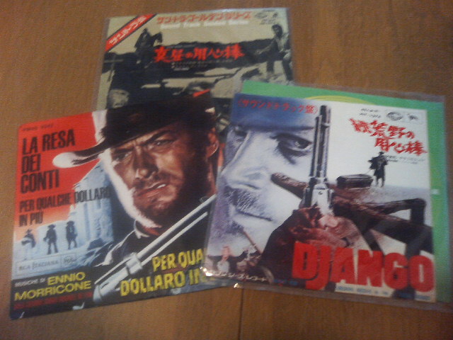仕事と休みの合間に『Zマジンガー』とか『ゲッターロボ號』とか読んでましたよ。 いつもと変わりないですな。 そんな折、両親から『テレビで映画ポスター集めてる店紹介しとったでえ。西宮にあるんやて『夕陽のガンマン』のチラシ、20万するんやてえ』と言われた。要は俺の集めたポスター類も金になるんじゃない?ということらしいのだが、西宮でポスター、というと昔、怪奇映画のポスター集を出したあの人かしら? とか思いつつ、実家の本棚をごそごそしてみる。 さすがにチラシはなかったが『夕陽のガンマン』のレコードがありました。でもこれ、父親の所有物なのよね。父がこんなものを買ったばかりに、その子は中古レコード屋でマカロニレコードを買い集めるおかしな子になったのですよ。 友人が昔くれた本場イタリア版? の夕陽のガンマン。それと、ポスターと同じレイアウトがかっこいい『続荒野の用心棒』のシングル盤。集めたマカロニものはほとんどが後発のカップリング盤ばかりでした、俺もまだまだだ。 昔っから『○○の主題歌』『○○のテーマソング』とかしか買わなかったから、珍奇なレコードがいっぱい出てきました。 007、必殺物、時代劇、メガフォース、串田アキラのマッドマックス カンフーもの……。イルマ体長こと高樹澪のレコードとか。今、聞こうと思えばプレイヤーを買い直すしかないのか、このままにしておくのはもったいないな。 座頭市あれこれ。『座頭市子守歌』はテレビ版の方がかっこいい。 連休の蝶々 |