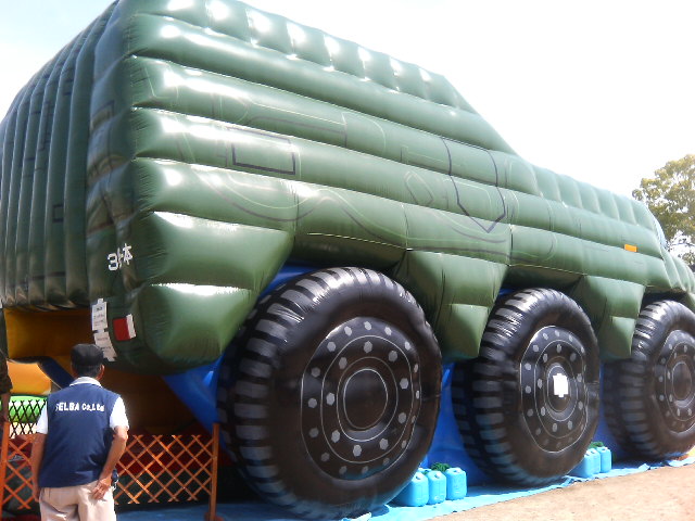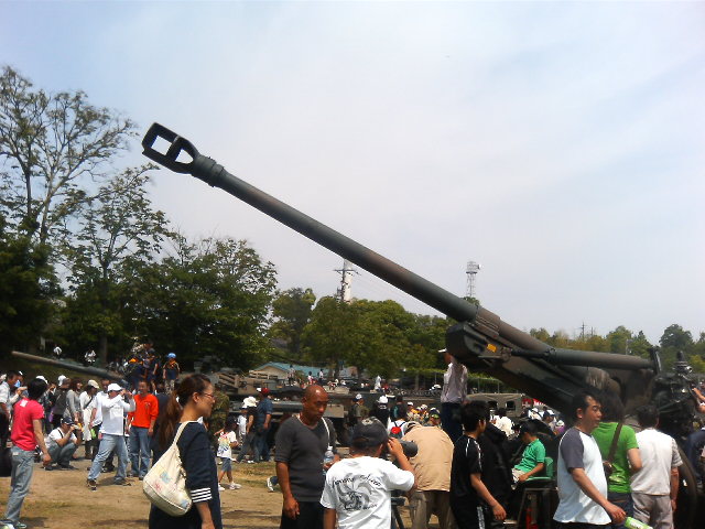 昨日は図書館でSFマガジンのバックナンバー漁ってマイミクさん達の仕事を拝ませてもらい……って去年のSF大会の広告の事ですが、それから信太山の自衛隊基地祭へ。 これを知ったのもマイミクのハスラーさんの日記を読んだからで、そういえば去年は行ったけど終了時間だった事を思い出しました。 車で十分ほどの距離に住んでいるのに。 満を持しての今年の基地祭。まずは駐車場に入ると 『すみません車の点検をおねがいします』と鏡のついた棒を持った自衛隊員に囲まれる。そうだった基地だ、ここは。車にミサイルとか危険物を持ち込まれは大変ですからね。でもこっちはカーナビで『スポンジボブ』を垂れ流す軽4ですが。 車を下りた俺を迎える装甲車! すげえ、でもこんなものはほんの序の口。 演習用グラウンドにおかれた兵器群! 大砲! その奥に戦車! ごめん、ミリタリーには全く疎いんで、見たまんま書きますよ。 ヘリコプター! 早そうだ。 その他、戦うだけではなく、災害救助用の特殊車両も多数展示。 どれも本当に動くからすごいね。 ミサイル車その一! ミサイル車その二! これって平成ガメラに出てこなかった? でもこのサイズだとヘリを撃ち落とすぐらいで、ミサイル迎撃用ではないらしいよ。 遊園地や住宅展示場でおなじみ、空気入れて中で子供が遊ぶぼよんぼよんした遊具(正式名称、あるのか?)の自衛隊版!こんなもの、各地の駐屯地にしかないと思う。 古いヘリ! これは『ガメラ対ギャオス』で真っ二つにされたやつでは? 71式戦車! お勤め品(失礼) 現地では情報提供者のマイミクのハスラーさんに会うこともできたのですが、誰経由でマイミクになったのかぜんぜん覚えておらず、失礼をしました。ほんと、人の顔と名前を覚えません。 午前中に行くとイベントもあったそうなので来年は是非。模擬店のコロッケ美味しゅうございました。でも自衛隊缶コーヒーは売ってなかったなあ。