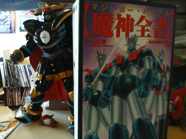 ◎某学校でキャラクターの授業、なんてやってますが、みんなに共通のイメージを持たせるためにアニメや漫画からではなく昔話のキャラを例に挙げてお話をしていたんですな。 『桃太郎』はその出自や鬼退治がキーになっている、浦島太郎もただの漁師だけど竜宮城に行ったという事件が物語性を高めている。 金太郎は? はた、と手が止まった。 『こいつ、事件起こしてないじゃん!』 よく思い出してほしい、私の記憶だと、金太郎って山で岡さんと二人暮らしで怪力の持ち主、そして動物と友達、ということぐらいしかトピックがないのだ。まあ、怪力の持ち主という所でキャラは立っていますがね。 鬼退治という英雄譚もなければ異郷に迷い込んだ、もしくは恩返した、されたという昔話にありがちな事件がない。500年近く(もっと昔か?)も愛されている。なぜだ? おかっぱ頭にマサカリ、そして腹がけ一枚、というあのルックスで500年近くもウケたというのか? この時点で細かい検証はしていない。よって俺は今度図書館に行って金太郎を借りてこようと思う。 でも金太郎ってその後、源頼光に見いだされて実際に鬼退治に参加してるんだよなあ、ここら辺を語ると話がうんと長くなるのでやめておいた。でも来週やる。ってもはや何の授業か分からなくなってきた。 ◎頭痛の原因が分かった、これだ!↑ 500ページにわたる大著『魔神全書(マジンガーバイブル)』! こんなもの読んでるから頭が痛くなるのだ、俺の頭に魔神がパイルダーオンしているからだ! カラダK7! かつて、俺が不良書店員をしていた頃、懐かしのアニメ、特撮の資料本がわんさか出た。スタッフ、キャストの昔話的な本も出た。一冊二冊ならフォローはできる、でも一挙に来られると……という事で、その時は一切その手の本に手を出していなかった。 なので、今はすっかり絶版となったそれらを探しまわっているありさま。 双葉社の大全シリーズは絶版にするスパンが早かったよ! マジンガー好きなら、講談社の『マジンガーZ大全集』に『鉄の城・マジンガーZ解体新書』を押さえておけば十分なのだけど、ないものねだりといいますか、手元にないと落ち着かないと申しますか、先日、定価とほとんど同じ額でオクで落としたのでした。 だって『ゴッドマジンガー』やその他、豪ちゃんが書き散らしたマジンガーのフォローもされていたもので。 ああ、でもでもまだだ! まだ足りない! OVA『マジンカイザー』は途中までしか紹介されていない! さらに言うなら放送中の『真マジンガー』は無論、載っていない! これは近い将来にこれらをすべてフォローした完全版、もしくは違う形で出してくれることを切に願う! そして俺は再び永井豪のマジンガーZ画集と、ダイナミックロボのデザインワークスを収めた本を探す旅に出るのです。あの時買っておけばよかった……。