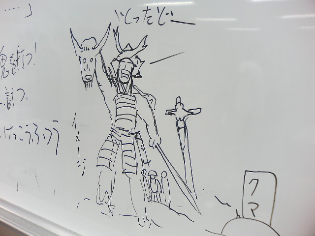 昨日やってた懐かしアネメの特番で、グレートマジンガーの最終回が『二大ヒーロー夢の競演!』なんてあおりで紹介されてましたが、 仲良く共闘に見えますが、それまではお互い嫌悪感むき出しだったことはあまり知られていない。 『兜甲児のお坊ちゃん育ちが気に入らないんだよ!』 『あいつが帰ってくれば、俺達はまたみなしごに!』 とみなしごのひがみ根性(本人談)全開の鉄也君についに甲児くんも 『剣鉄也の奴め!』と怒りをあらわにするのでした。 そんな2人も父親である兜剣造博士の死で目が覚めたのか、協力し合うのでした。 とここまで書いていてまだ真マジンガー見てないや。 ◎前々回で書いた金太郎なのですが、あれからお話を青空文庫(いけないねえ、ちゃんと図書館で調べてない)で読んだら、怪力無双の子供が武士にスカウトされてめでたし、というお話でした。 特に事件なし、では何が金太郎の魅力かというと『出世』のようです。いつの世も出世物語は人気があるのかねえ。そう思えば『サラリーマン金太郎』はあながち間違いじゃない。 源頼光の部下になった金太郎は、その後、四天王というユニットを組んで、大江山の鬼の大将、酒天童子征伐に行くんですな。そこら辺は『新ゲッターロボ』でも書かれておりますぅ。大きく歪んでますが。 本屋で立ち読みした絵本だと、やはり、出世しました、で終わるのは物足りないと思ったのか、酒天童子のくだりも入れて『鬼退治モノ』になっているものもあった。 で、先日の某学校では、金太郎のお話を声優学科の学生さん8人! に読んでもらい、その後の金太郎を考えてもらう授業を。 皆さん、いい声でした。さわやかな金太郎さんでした。後で『勝手に引き抜くな』と怒られましたが。 お話から素材を得て、アフターストーリーを考えるのはまっとうなやり方で、面白い事に『頼光の娘を手ごめ』『故郷に帰る』『反逆者金太郎』のネタが多かったなあ。みんな、たまっているのか? あと、金太郎飴を売って生計を立てていた、というのもいかにもな感じでよかったですぞ。 でも、みんないい感じにこなれた暁にはぜひもっと突飛な物を。 ヒマラヤの氷壁に埋まったクマの顔から始まる金太郎なぞをぜひ考えてみてください。 しかし、今年の新入生はどこもイキがいい。そして仲がいい。 放課後、教室のビデオプロジェクターで『カノン』を見ておりました。 大画面に炸裂するカノン! 肩寄せ合って鑑賞する男たち! 仲いいなあ。 カノン! といえばこの歌。 エンドクレジットで友達の名前が出ていて驚きました。しかし、みんな出世していくのでおいそれと『俺の友達』なんて言えないなーなんて思う小心者であります。 ↑ 源頼光、酒天童子を打ち取る、の図。珍しくうまく描けた。 PR もう30年以上前の話です。 信一郎君もそんなことは薄々気づいてはいました。でも、ジュンさんのように毎日を戦いに捧げるつもりもありません。というか、自分なりの解釈で戦いを終結させ、ジュンさんを、そして孤児だからとバカにしていた連中を見返してやろう、そんな事を考えました。 そこで信一郎君の取った行動は、何と、『敵に直訴』だったのです。 気がつくと、信一郎君は戦闘獣『ゲルニカス』に改造されていたのです。 グレートマジンガー52話 主人公、あるいは主要人物の旧友(ゲストキャラ)が実は敵に寝返り……なんてのはよくあるパターンだと思うのですが、信一郎君のように『敵に戦いを終わらせる用に直訴』し、敵のいいように使われるというパターンはあまり、というか、ない。 ミハルがドズル・ザビに直訴に行ったか? 違うか? 結局信一郎君は自分の体の事を知って無敵要塞デモニカ内で自爆し、ジュンさんからは『あなたが考えているほど、平和って簡単に手に入るもんじゃないわ』とか何とか、散々な言われ方をするんですな。あ、ジュンさんは悲しかったんでしょうが、こんな物言いしかできない子なんです。根はやさしい子なんです。説教好きですが。 でも、この一カ月近く後で『グレートマジンガー』は終了するんですな。