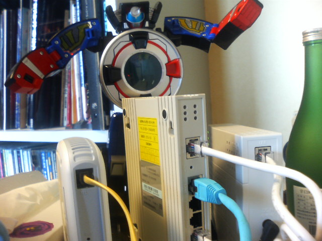 常に首を傾げた俺は、見る人が見ると『はあ? ナニ言ってんだコラ』 みたいな立ち姿に不快感を表すかも知れないが、勘弁してくれ。 さて。半年、いや、それ以前からしつこく誘われていたので、うちもようやく光回線にしてみる。 なぜそこまで時間がかかったか?だって『工事費無料よ♡』とか長澤まさみの声で言われてもにわかに信じられないし、詐欺の類いだと思ったし、それに光回線って長ーい光ケーブルを家じゅうに張り巡らさなければいけない、と思っていたのだ。 実際は電解線をごちょちょと二時間弱。そのために、俺の、俺のおもちゃの詰まった机の下を開放しなければならないという羞恥プレイを受ける。 なんだ、まったく簡単! と思って外に出たら、配線工事の車両やら警備の伯父さん達も来ていて驚いた。それでも工事費無料と申すのか? で、光回線を写真で見せたいが、無理なので、代わりに三基のルーターと日曜日の朝日新聞に登場したゴローダーGTを。足関節に指を挟む子供が続出してるとか。 さて、光回線にしたので……、と動画サイトを見ると、なるほど、スムーズだ。光のすごさはまだまだあるかも知れないが、今はこれぐらいにしておこう。 最近小学生の間ではお母さんのお手伝いをしながら『銭のためなら何でもするズラ』と言ってお駄賃をもらう子が急増とか。」 本当なら、あのドラマ化は決して無駄ではなかったのだなと思います。需要があるっていい事だ。最近、漫画、アニメ、映画のリメイクとか実写化に寛容になってきました。 そう、まだ俺の心が寛容でなかった頃、新ライダーのデザインが発表されると毎年のように でも昨日の第一話は……。 あぁ、ベルトが久々に欲しいと思ったさ。くるっとまわったり、カパッと開いたりするギミックに弱いのさ。 あぁ、分かったぞ、ディケイドの不細工面とピンクの体色はわざとダサくして歴代ライダーを引き立てようって言う魂胆なんだな。 この調子で石橋レンジも変身せんかな。 とかとか言ってまたいい年こいて毎週仮面ライダーを見るのですよ、たぶん。 |