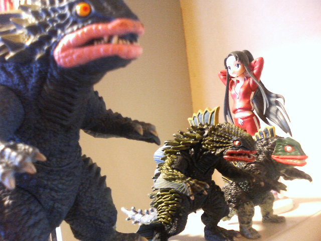 うぅん、こんな事になろうとは。他に手が回らないので、もうひとつ脳みそと、一対の手がほしい。 というわけでその合間に頭ひねったり、ディケイド効果で『響鬼』の良かった頃のを借りてみた。地味だなあ。だからいい。 途中からいつもの展開になったり、脇キャラが目立ったり、成長しないといけない人が成長しなかったり、と色々あったよなあ、としみじみ。 ちなみにレンタル屋に行くと『カブト』が全巻貸し出し中。これはディケイど、というより『メイちゃん(もしくは水嶋ヒロ)』効果? 今更ながら『ゴルゴ13』を読んで、すげーと思ってみたり。というか、普通にゴルゴが読めるって俺もおっさんになったもんだ。昔はあんなにセリフ量の多いマンガ読みたくなかったのに。とか言ってるくせにコンセプトはほぼ一緒の『子連れ狼』全巻を高校受験を控えた中3の冬に買っていたのは誰だ。そのくせさいとう版『まんが007』を、在庫を返品していないおかげで古本屋状態になっていた町の小さな本屋で喜々として買っていたのは誰だ。ついでに『無用ノ介』も。 てな訳でやっとさいとうたかをの大本命に今更近づいた、という次第。 さいとうたかを先生は本当はSFが描きたかったと何かで読みました。病院の待合で読んだ『デビルキング』、強烈だったなあ。 それと藤子F(フラッシュ)先生が亡くなられた時は『俺があいつの児童漫画を引き継ぐ!』とか言ってたのに。読んでみたい。 あぁ、もうバレンタインだよ。という事でチョコ好き海獣ゲスラ。 今年は食玩の、ものすごく出来のいいキングゲスラ。 ↑ソフビとガチャガチャ版と並べてみる。日本中のチョコは俺たちがいただく! あ、食玩ミニソフビもあったはずだ。 見つけ次第『楽しいゲスラ一家』にしないと。 宣伝 http:// 詳しくは後日。シナリオやりました。 ◎世の中の善と悪とを比べれば……という事でヒーローもののお話。