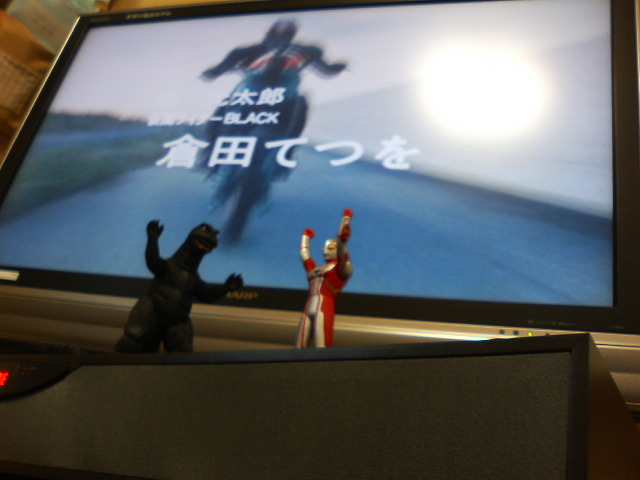 しかもアナザーには劇中にないオプションの赤いマフラー付き。うーんかっこいい。 そしてもう一方の紙袋には『仮面ライダーX&アポロガイスト』が! で、さっそく戦わせる。アポロガイストは再生版にアポロチェンジし、ライドルスティックとチャンバラさせてみる。 ライドル脳天割が決まり、こと切れるアポロガイスト。 いじり倒すんだったら、GOD悪人軍団(サソリジェロニモとかカブトムシルパンとか。いや、神話怪人も捨てがたいな)かキングダークを付けておくれよ。 そうそう、今秋水曜日に上京しますので、お時間のある方は是非。 あぁ、37インチ画面で『天才バカボン』(再放送)を見る贅沢。 木曜日はこの後『スポンジボブ』をやってみているちびっこの頭をおかしくしてしまう。 で、先日の話。某専門学校で体験授業用講師をやっていて、その日はおきゃくさんが一人。 高校三年生の女の子。 小説家志望だったら何読んでるの、何聞いてるの?みたいな話になっていくうち、私大の彼女のすご い経歴が明らかに……。 幼少時から空手、テコンドー、合気道、居合、なぎなた、それに英語をたしなんでいて、今は工業高校でロボット作っていてゆくゆくは巨大ロボに乗りたい、だと? 来るべきその日のためにパイロットの免許も取りたい、だと? おもしろすぎる! 格闘技をやっていたのはロボに乗る下準備だったのか? 家に帰った時に黒人の大男やナイフ使いに襲われても楽勝、スカウトされても難なく乗りこなせそうだ! で、そんなおもしろすぎる人生の子がなんで小説家と声優志望なんだよ? この時ばかりは俺が聞き役に回りました。もう、君をモデルのラノベ書いた方がおもろいよ! 現実問題として、ロボに乗るより声優になって憧れの人に会う方が確率は高そうなので、声優コースを勧めました。その後学科担当の先生に怒られましたが。 でも、今の子(平成生まれ)は早乙女研究所や科学要塞研究所じゃなくて、ソレスタルビーイングに入りたいんだなあ。 それから、新世界で、大学時代の後輩で、今やすっかり偉くなった某氏とコーヒー飲んで、お互いの親ばかぶりを見せつけあって、メインイベントの『いまさらだけどライトノベル大喜利打ち上げ大会』へ。 あの夏、苦労を共にした仲間たちと久しぶりの再会。 今回は幹事のひびき先生が選びに選んだ串カツ屋へ。 『もう、適当に頼みますよー』 と、選んだ串カツ100本余りを8人でたらふく食べました。久しぶりの酒だから、酔いも早く、もっぱらの話題は来年の新ライダーと新戦隊でしたが、今やってるライダーが面白いとは誰も言ってませんでした(部分的に面白いが)。 それと、俺の向かいの席に座った作家さんはやたら巫女さんの事ばかりしゃべっているので困りました。 久しぶりの新世界は、前にも書いたけど、すっかり観光地のような作りで、昔のようないかがわしさがすっかり影を潜めた感じでした。 エロの殿堂『宮竹書店』もすでになく、跡には藤田まことの串カツ屋になってました。 プロレスのビデオばっかり流してる中華料理屋も、ホルモンうどんの店ももうないなあ。 でも、新世界の映画館はまだまだ頑張っていた。次週から『ホットファズ』かあ。 飛田では『日本誕生』やってるんだって。 食い散らかした串カツの残骸。みんなごめん、俺、串チーズ食ってない。 キャベツばっかり食ってた。 ベタに夜の通天閣。 ロボ少女から串カツまで楽しい一日だった。 フェスティバルゲートは単なる巨大な抜け道と化していた。はよなんとかせえ。 わーお! 高い買い物したぜ!これは今までの俺への『よくやった』とこれからの俺の『よくやってくれ』の、二重の意味を込めた買い物だった! テレビ! 大型テレビ! 世間じゃ地デジで大型化が進むテレビ!