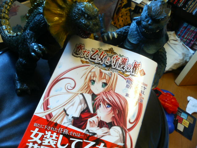 イ「しかし、汚い部屋だな」 オ「ほっとけ! お前んところも似たようなものだろ」 イ「ソフビはちゃんと飾れよ。部屋に転がすなよ、トゲトゲが危ないだろうが」 オ「つい触っちゃうんだよ」 イ「それと合金は中の発泡スチロールの箱がぽろぽろ崩れるな。あと、SICの針金ぐるぐる地獄はどうにかならんかね?」 オ「メーカーに言え、そんな事」 オ「『コーヒーください』って素直に言えないのか、お前は」 <コーヒーを入れる、飲む> オ「さて、このたび集英社から無事デビューしたわけだが」 イ「なんでそんな大スポ風の物言いなんだ」 オ「細かいこと気にするな。しかし、俺はどうして作家の知人より、知人が作家になる率が高いんだろうか?」 イ「コーヒーおかわり」 オ「聞いてんのか?」 <コーヒーおかわり> オ「なにも喋ってないだろうが! で、どんな内容だ? 宣伝しといてやる」 イ「新人エージェントが女装して全寮制女子校に転入し、ターゲットを見えない敵から守る話だ」 オ「潜入捜査モノか。まるで007のようだな。敵のボスはちゃんと猫抱いてるハゲのおっさんにしたか?」 イ「そっち方面じゃない、ラノベだ!」 オ「なるほど。女装学園ボディーガードか。これでもう一ネタあれば晩年のエド・ウッドが考えそうな話だな」 イ「だからその辺からの発想やめい! これは人気PCゲームのノベライズ版だからな、客層が違うんだよ」 オ「ゲームノベルか……。俺もやったな」 イ「お前と違って、ちゃんと内容を噛み砕いて文章にしているぞ。河童とか怪獣は出ないからな」 オ「ならいらない」 イ「買えよ! そもそもドタバタ学園ラブコメなんだからそんなもの出る展開なんてあるわけないだろうが!」 オ「自分オリジナルな設定とか怪獣とか忍者は?」 イ「でーまーせーん。そういう勝手なことやるとお前みたいに怒られるんだよ!」 オ「ダメなのか……」 イ「ゲームの特典小説の時も言われたんだろう、『ごく普通に書け』って」 オ「俺はいたって普通だよ」 イ「クリスマスにニワトリが暴れまわるギャルげーのノベルなんか見たことないよ」 オ「季節に合ったいい話だ。自然現象だ」 イ「それに、女の子忍者が怪獣に化けるような小説書いてか?」 オ「ガマに化けるんだ。でかい奴にな」