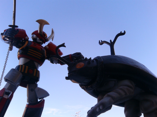 そんな状態であるにもかかわらず、生きる上のしがらみというか何というか、日本海に行ってきました。 恐竜戦車! 恐竜に戦車を乗せただけというセンスのなさ。否、これこそがキル星人の宇宙センス、スペーシィなケレン味だと思いたい! 高速道路をひた走る恐竜戦車!日本海を目指せ! 下のワイパーなど見えない! 日本海はこれで二度目。前と同じ宿、同じコース。嬉しいのはすぐ後ろが海水浴場だということ。 しかも夕方。水もいい感じでまだ温かく、いるのは俺の他は、いちゃいちゃカップルが二組だけ。 泳いだ。何もかもを忘れて泳いだ。陸に上がった時、全てを思い出して戦慄した。 宿では子供向けの映画大会で『名探偵コナン』を上映していた。 確か前に来た時は『チャーリーとチョコレート工場』だった。冬の日本海でハリウッド……、悪くはないが、いいともいえない。 その夜はbsのルパン特集を見ながら原稿を書く。旅先で原稿だなんて俺も偉くなったもんだ。でもやってることは家にいるのとあまり変わりない。 ルパンは……。 世間じゃ宮崎版の二本だとか、ファーストシリーズ(前半か後半かでもめる)だとかカリ城だとか色々言ってますが、俺の印象は、ひたすら『あばよ、とっつぁーん』 『待てールパーン』 の頭の悪い鬼ごっこイン日曜の昼下がり(再)なんだがな。 赤ジャケットな。 それでいいんじゃないの? と思いながら久しぶりに山田康雄の声での『ドゥふフフフ……』のルパン笑いが聞けました。 bsの特集ではお情けのようにピンクのルパンもやってくれました。そうだ、ルパン三世はこのグダグダ感がいいんだよ。 勘違いするな。ルパンは『グダグダ泥棒コメディ、たまにアクション』なんだよ。とはいえ『さらば愛しのルパンよ』はすげえ。 『一体何人死んだんだ?』 宿のフロントで、フロントマンのおじさんから甲山の牛の話を聞きだそうとしたが、今回も失敗。でもおかしいよね、『甲』のつく山にはなぜ牛の怪談があるのだろうか。六甲山とか。 翌日は車ですぐの水族館へ。 勝てるわけがないセイウチの下半身。 同じく勝てるわけのないイルカの大ジャンプ。 しかし、海と山に囲まれたいいところだった。また行こう、今度は何もかもを終わらせた時にでも、と思った。 で、帰宅しても机に向かう。 ♪きーみはだーーーれときすをするー そんな歌だったか。ッていまさらかよ! マクロスF(フラッシュ)は宇宙レギオンがいいよね。 友人達が大躍進、大進撃の中、のろのろと手を動かしております。 ◎田舎町の、こんな田舎町で痛車を発見! ナンバーは他府県だったのですが。 灼眼の軽四自動車でした。 写真を撮ろうと構えたら、物凄いスピードで、ジグザグに走って見えなくなりました。 ◎机に座りっぱなしだと、テレビも見れない。友人は音楽と手に触れて遊ぶオモチャのみ。 そこで、超合金魂バトルフィーバーロボを購入。発売してどれだけ経ってんだ! ♪ ちきゅうがひめぇーーーをあげてーーるぜー(バトルフィーバー) だれかが ぼくらーーーーをぉよんでるぜー(バトルフィーバー) 戦隊ロボで唯一かっこいいと思うデザイン。 何だ今のトーテム……。 鎧兜を基調とし、これ以上の合体はないシンプルさ。さすが戦隊ロボ一号。 ロボットである。が、中に人が入る着ぐるみでもある。 外のスタイルと中のスタイルのアンバランスさ、ヘタレ感がよく出ております。 電光剣も構えられます。 合金の含有率が?な感じですが、暑い夏は鋼鉄の同士をころころ転がして仕事に励むよろし。 エゴス怪人はいないので、甲虫怪獣アゴンと。 オープンのあおり画がいかにも、と思っていただければ幸い。 ◎で、週末は法事で箕面方面へ。 引越しの予定はないけれど、住みやすいところだなあ。 時間があれば山に登って滝とか去るとか……。でも仕事だ! ◎灼熱の大阪市。堀江方面はたくさんオシャレさんが歩いているねえ。 公園では漫才やお芝居の練習をする若者が熱中症覚悟で頑張っていた。俺も頑張らねば、と思う。 ◎通り一つ向こうのアメリカ村は、堀江とはずいぶん雰囲気が違うよ。大阪観光か! 久しぶりに行ってみたが、もう、面白いTシャツを売ってる店が少なくなってきたので寂しい。いつの間にか外人とギャングが闊歩する街になっていた(うそ)。 ◎仕方ないので特価500円のリボルテックブラックオックスを購入。 これを買ったが最後、今度は鉄人がほしくなる罠。 鉄人は何もかも終えてからのご褒美、ということにしておく。 最近買ったもの……。黒いロボが多いなあ。ほら、暑いのでひんやりとした感じがいいんだよ。てなわけで頑張ろう。週末、果たして旅に出れるのか? 大変だあ。