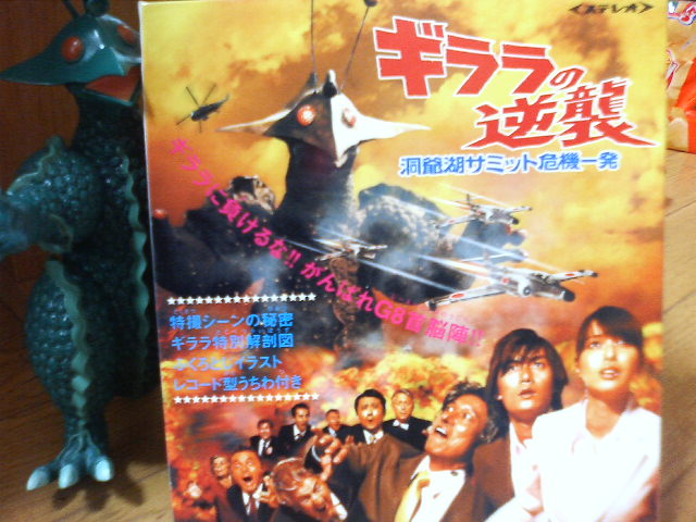 気のせいだ。しかし、しかし……。 蓋を開けたら二週間打ち切り続出、レイトショーばかりで、昼に見ようと思ったら難波でしかやっていない 『ギララの逆襲 洞爺湖サミット危機一発!』 を見るのは今しかない! 仕事ほったらかして映画ぁ? ノンノンノノンノン。 映画じゃない、『怪獣』を見に行くんだよ! しかも、21世紀になって復活するとは思わなかった昭和の一発屋怪獣をよぉ! ギララ! かつて日本には『怪獣ブーム』があった。 今で言うと……。ええっと、みんなの趣味が細分化されたので、例えるものがないんだが……。 羞恥心……チガウナ。 ケータイ小説の映画化とか、動物映画とかアニメ映画とか、実写漫画映画(余談ですが、昨日テレビでやってた『どろろ』は着物は薄汚れているのにセットが小奇麗なところで興醒めした)とか、そんなところか。 東宝のゴジラが火付け役となり、大映ではガメラ、そして日活はガッパ、と邦画各社がこぞって怪獣ものを作っていたのですな。 そして、文芸路線で怪獣には縁遠い松竹もついにブームに便乗して作ったのが『宇宙大怪獣ギララ』なのです。 結局、日活のガッパもギララもこれ一本で終わり、各社揃って『慣れぬものに手を出すべきではない』と思ったのか、これ以降怪獣映画を作っていない。 あと、時代劇で名を馳せた東映も『怪竜大決戦』という忍者物プラス怪獣ものを製作しているが、その流れはテレビの赤影に移り、『うちは等身大ヒーロー物でいいや』と思ったのか、今のキバやゴーオンジャーに至る……。 で、そんなギララがまさかの復活、でも監督が『地球防衛少女イコちゃん』の川崎実! 『エスパレイザー』の川崎実! 電エースの……もういいか。 日本一のお手軽監督だ。そのフットワークの軽さと思いつきは見習いたいが見習いたくない、そんな人物だ。 でもギララだ。 見事なまでに再現されたギララの着ぐるみを雑誌で見るにつれ 『これは是非見ねば!』と思い、そして劇場へ。 バカ映画でした、終わり。いや、そうじゃねえよ! スクリーンで暴れまわる着ぐるみ怪獣! 迎え撃つタケ魔人! 宇宙空想科学対土着信仰の守護神! この発想はなかった! やられた! でも安い、実に安い映画だ! でもそんな事はどうでもいい! 怪獣が暴れたり取っ組み合ったりしてるのを見れただけでも俺は満足なのだ! そこにギララがいる、それでいい。 あ、洞爺湖サミットネタもね。 思えば今年はこの映画と結局未見に終わった『マツジュンの隠し砦の三悪人』で、21世紀だというのに『地元民が輪になってドンタタドンタタ、と踊る』が見れただけでも収穫ではないだろうか? 違う? ともあれギララだ。今週末で終わるからしかと見ておけ! よくもないが悪くもない、それがギララだ! ↑ ソノシート風パンフ ↑ パンフに載ってた解剖図。そう、『トランスフォーマー』にも『クロバーフィールド』にもこれがなかった。 勝った! ↑帰宅して旧『ギララ』を見る。フィギュア、プラモ入りの馬鹿でかいボックス。 これはこれでゆるい。 来年は本当にガッパをやるのだろうか? PR ◎ 週末は週末でした。もう後がない状況で遊んできました。