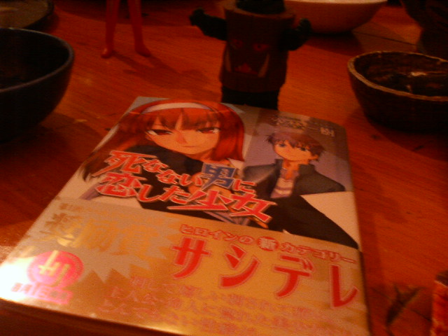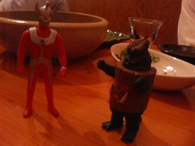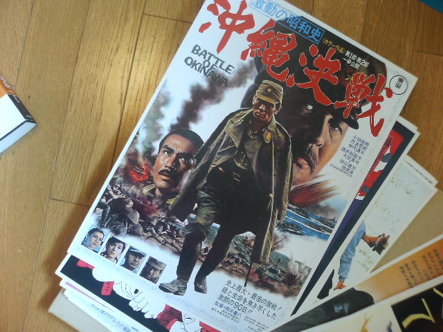 本日は恒例不定期会合『都麗美会』の『空埜一樹先生出版祝い&夏のアレ』と称して、いつもの喫茶店を飛び出して日本橋に集結。 そう、トレビ会のメンバー、ソラノ君がこのたびホビージャパン文庫からデビューしたのですよ。 『死なない男に恋した少女』 ラノベ史上初の新ジャンル『サシデレ』! サシデレとは何か? サシのデレだよ! しかも本日が発売日! 祝わずにおられいでか! と、まずは大正浪漫酒房でかんぱーい! 女給さんはみんな袴だ! 言っておくが、着物に袴だ。袴一丁上は裸、じゃないぞ! 飲みに飲んで、あれやこれや。タコワサウマー。 ここは女給さんを呼ぶのに、でんでん太鼓と拍子木を使うのだが、 もと鳴らしたかったー! 『お命、御用心』、チョン! そしてマイミクのねこにゃん様をゲストに迎え、夏のアレの打ち合わせも少々。 次回は着物で行ってみたい! 続いては、あぁ、メイド喫茶! 酔いも手伝ってメイドさんだらけの前に立つとなぜだかシャイボーイになる俺。 いかんいかん、今日の面子はワイルドバンチなんだよ! 飲むぜコーヒー、打つぜ打ち合わせ! ダメだ、ヴァンダムとセガールは禁句だ! 面白すぎるから! まわしの下はスパッツぅ? いや、剃った上でまわしを締めろ! タンクトップの下は何も着るな、浮かせ! いや、メイドさんがタンクトップにまわしを締めてたんじゃないんですが、ともかくそういう会話でした。 酔いが醒めて眠くなったので、ここまで。支離滅裂のうちに眠りたい。あ、ちゃんと宿題したよー。 女給さんからもメイドさんからも『おめでとうございます って言われてうらやましいぞ、ソラノ君。 ともあれ、 『死なない男に恋した少女』 『死なない男に恋した少女』 を、よろしくひとつ。 あ、ソフマップで、メモオフPSP売ってたよ。 ノベルのタイトルも記載されて恥ずかしい限り。 アレはスカイドン……。 ↑ ついに買った食玩モチロンとウルトラマンタロウ! モチロンが出るとはなあ……。 何度でも言う『死なない男に恋した少女』、よろしく! あぁ。 チラ見程度で、と思って昨晩録画した『激動の昭和史・沖縄決戦』を全部見てしまった。 冒頭から岡本喜八監督のテンポいい演出に飲まれてつい……。 タイトルどおり、である。第二次大戦で唯一の国内戦といわれた沖縄決戦をもう、これでもか、というぐらいに描いた映画である。 二時間強を駆け巡るのは、仲代でも丹波でもなく、小林清志のナレーション。 小気味よいカット割とナレーションで、各地で進行する沖縄の惨状を分かりやすく解説してくれる。 右往左往する軍上層部よりも、ここで岡本監督は戦争で一番酷い目にあった庶民や、少年兵に重きを置いて撮っている。 予算の関係で、上陸したアメリカ軍の姿をほとんど映していないのだが、それがかえって、恐怖感を煽り立てる。 大作扱いなのに、予算はほとんどなかったらしい。 でも火薬量は半端ナイ。 ただただ『戦争はいあやだなあ』と思う一本。重い話なのだが、そう思わせないのは監督の力量か。 ↑『岡本喜八ポスター全集』所蔵の『沖縄決戦』 『(敵艦隊が多くて)海が見えません!』 の有名な台詞もこの映画から。 実際は『海の色が見えない!』なんですが。 戦争の愚かさと無常さを噛締めつつ、さて。