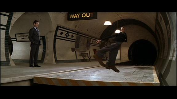 お話は痛みを感じない変態テロリスト(007の敵は変態か金持ち、もしくは変態で金持ちと相場が決まっているし、そうでないと面白くないのだ)対ボンドで、殺人スキー部隊あり、殺人ノコギリヘリコプターありと、飽きさせない、どこを切っても007な内容でした。それはいい。問題はそのテレビ用の編集だ。 二時間強の作品を正味二時間、CM入れて1時間45分程度に納めないといけないのはわかるが、主題歌を切ることねえだろ、と思ったよ。 主題歌と女体をあしらったかっこいいオープニングタイトルバックは007シリーズの顔でもあるわけですよ。そこ切るとは、とほほ。 昔、二時間枠でオープニングすっ飛ばしていきなり主題曲から始まる『女王陛下の007』てのもあったのに。 で、主題歌とオープニングがこれ。 女性ボーカルの気だるさが『ふふん、世界、あげちゃおっかな……。もらおうっかな……。どっちだ』って気分にさせてくれるゴージャス感あふれるブリティッシュ演歌。 ちゃんとボンド節入ってるし。 で、そのプロモーションビデオ。 ふつう007の主題歌のプロモと言えば、映画の場面が効果的に使われていたり、ガンバレル越しに歌ったり、秘密兵器てんこもりだったり、どのような形にせよ007っぽく作るはずなのだが、これは一切なし。俺だったら絶対それっぽく作って歌うのに。 まあ、爆弾抱えた殺人アンドロイドってのがそれっぽいか。否、それじゃあオースティンパワーズだ! ↑ おなじみ007のガンバレル。これは『ダイ・アナザーデイ』の時。 ↑同じく『ダイアナ』より、モンティパイソンのジョン クリーズが一瞬バカ歩きになる瞬間。分かる人にはわかる。