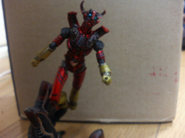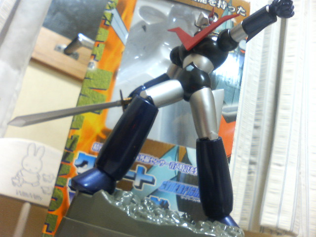 週末―。つかの間の休息。いや、平日も休息しまくってるじゃねえか! とか言われそうですね、夜勤の物書きは。 昨日、勤務先で職業病検診といのがあって行って来たのだが、これが何てことない、懐かしの体力測定でした。 立位体前屈とか、握力とか、踏み台昇降とか。 へとへとになりました。握力がなさすぎなのに、がく然としました。 おかしい、リンゴを握ってつぶせるほどだと思っていたのだが。俺の手は柔らかいもの(おぱいとか)を触るためにあるのだな、とそういう事にしておいた。 でもまあ、トータルでは『年相応』らしいのでよしとしよう。 ただ、前日受けた健康診断の際、レントゲンに引っ掛かる所があったらしいので、再検診するとの事。 『ほら、影とか、いえ、よくレントゲンって影が……、いえ、とにかくCTしますので』 看護師さん、今『影』って言った! レントゲンで影って……。 まあ、その時はその時、検査受けないと分からんからね。 話は少し戻って金曜日。マイミクで作家のソラノクンからメール。 『グレートの置時計がありますがどうします?』 『お願いします』 という事で、ソラノクンに捕獲してもらい、某所で落ち合って受け取ってきました。 ↑グレートマジンガー時計! 時計じゃないじゃないか! いえいえ、台座の部分が時計なのです。 しかも、赤外線感知式で、なんでもいいからリモコンを向けてボタンを押すと、時間を知らせてくれるどころか、剣鉄也(『鷹のように強くなりたい』と思って鷹を飼っていたら、その鷹が友達を襲って失明させて以来鳥恐怖症になった戦闘のプロ)で『スクランブルダーッシュ!』と叫んでくれます。時報とスクランブルダッシュです。 フィギュアの造形は今風でかっこいいです。本編はもっと寸胴だったと思います。その日、まんが祭りのマジンガーを見ていたから間違いありません。おぉ、ボークスが作っていたのか! 確かこのシリーズ、マジンガーZもあったと思います。 似たようなものでは海洋堂の『部長刑事京本政樹のフィギュア時計』もあったと思います。 ソラノクンにはこの場を借りて感謝したいと思います。今度は市内で『都麗美会』をしましょう。集まったからって何になるでもありませんが。 ↑おまけに貰った匠魂のロボット刑事。台座はマザーの手かな? 赤くなってもう……。細かいパーツがぽろぽろ取れました。 ありがとう。