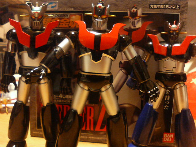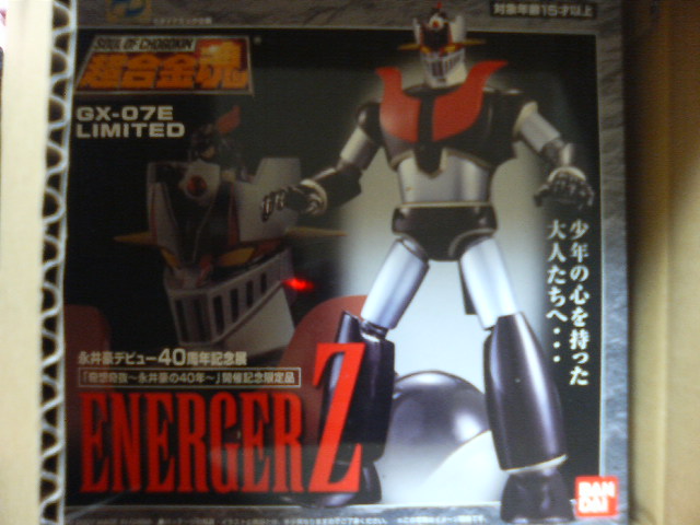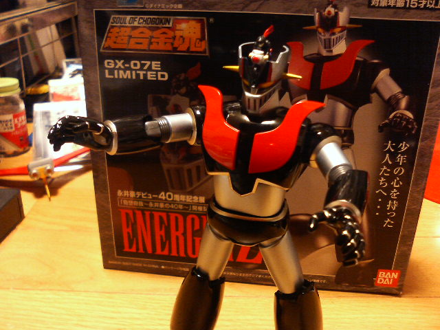 まだ暗いアーサー! 俺はむくりと起きて、部屋に向かう。そう、あいつを、あいつを箱から出す! 昨日宅急便で来たあいつ、エネルガーZを! 東京で行われた永井豪40周年記念展会場でのみ販売された超合金を、ネット通販で入手! オークションじゃないぞ、ちゃんと磐梯山から、否、バンダイさんから買ったんじゃい! 平日の午前中という予約開始時間に、あぁ、不規則な勤務時間で良かったぁ、と思ったさ。 で、エネルガーZとは? と思われる人も多いかと思うので、少し解説。 マジンガーZのボツデザインです。以上。 人が乗り込む巨大ロボ、という基本理念は変わらないものの、乗り物がバイクだったり、バイクが駆け上がるために背中にカタパルトを背負っていたりします。あとはほとんどマジンガーと変わらないか。 でも、つくづく、これはNGデザインだなあ、と思います。 バイクが小型飛行機になり、バケツ型の頭部になって、余計な装飾を取っ払い、マジンガーZになったのかあ。 これがあるから今のZがある。うーん、感慨深い。とりあえず遊ぶ。 ↑ 凶悪な顔つき。いいよぉ、豪ちゃんデザインって感じ。箱にも書いてあるけど、魔王ダンテにも似てる。 ↑ 左から、原作版Z、エネルガー、アニメ版と並べてみる。アニメ版はやっぱりスマートですな。 で、壮絶なる争奪戦のすえ手に入れたエネルガーですが、講談社の通販で『アイアンz』名義で、ちょっと手直し、追加して買えるみたいです。外観は全然変わっておりませんので、欲しい人はこちらまで。 このままいくと、ロビンZ (エネルガー、アイアンに続く没ネーミング)も出そうだ。 そんなことよりもチェンジロボットゲッター3(ゲッターのボツデザイン)を出してください。さすがに買いませんが。 なに、3月にある東京のイベントで超合金魂10周年マジンガーZスペシャルバージョンとな? うわわーん! 3月までに金持ちの偉い人になれるやろか? |