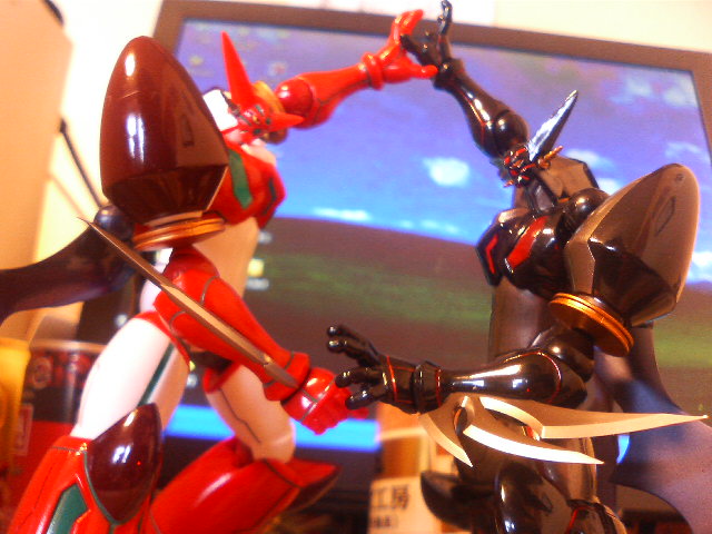 『スピルバーグとマイケルベイの戦え! 超ロボット生命体トランスフォーマー』 を繰り返し見ておりますが、うーん、立派な怪獣映画。前回『怪獣映画はアメ公には無理』とか書きましたが、ごめん、やればできるものだ。 『俺様は、……メガトロンだ!』 このセリフだけで今年NO.1映画決定。 いやあ、年末だというのにのんびりしていていいものかしら。 昨年は連チャン仕事でくたくただったが。 いや、体使わなくても頭使う仕事はあるんでげすよ。 昨日、マイミクのソラノさんrainさん、そして玉造と会ってきました。いや、何となく集まろうって事だったのですが、玉造の『鉄球姫!エミリー二巻』改め『修道女エミリー』発売を祝して、と言う後付けで。 そしてこの新人作家の会合を、店の名前から『都麗美会』と命名。 暴走族みたいだ。 すみません、一人で喋ったみたいで。 さびしいんですかね。話し相手がいない環境にいるからかねえ。 お昼から夕方まで、取り留めのない話をコーヒー一杯でがんばる健全な会合。 だからエミリーは巻を追うごとに職が変わるんだよ、『ラーメン屋エミリー』とか! みんなの『こうだったらいいなー』の妄想話とか。 よしんばクロスオーバーさせるんなら、エミリーはウチの殿と政略結婚するんだよ! まるで仕事人対騎兵隊みたいな話になるんだよ、多分。 あとよろしく! エミリーエミリーって俺、好きなのか? でも彼女、鉄の匂いがしそうだ。 殿、脇差をお持ちなさい、オサカはうれしゅうございます! うわーん! と言う事で、いつものことですが、小池一夫には敵わん、と言う所で会は終了。 皆様ありがとうございました。 白、緑、赤、となんとなくクリスマスっぽいのでリボルテック真ゲッターを購入。俺から俺のプレゼントだ。 黒真ゲッターと『サンダ対ガイラ』ポーズ。 やっとみつけた食玩THE NEXTの1号2号。 300円で買えるささやかな幸せ、だと思う。デネブも欲しいね。 とまあ、いい心持ちで家に帰ると、編集さんから素敵なお菓子のプレゼントが届いていた。そして直しチェック入り原稿も……。戦いがまた始まるのか。