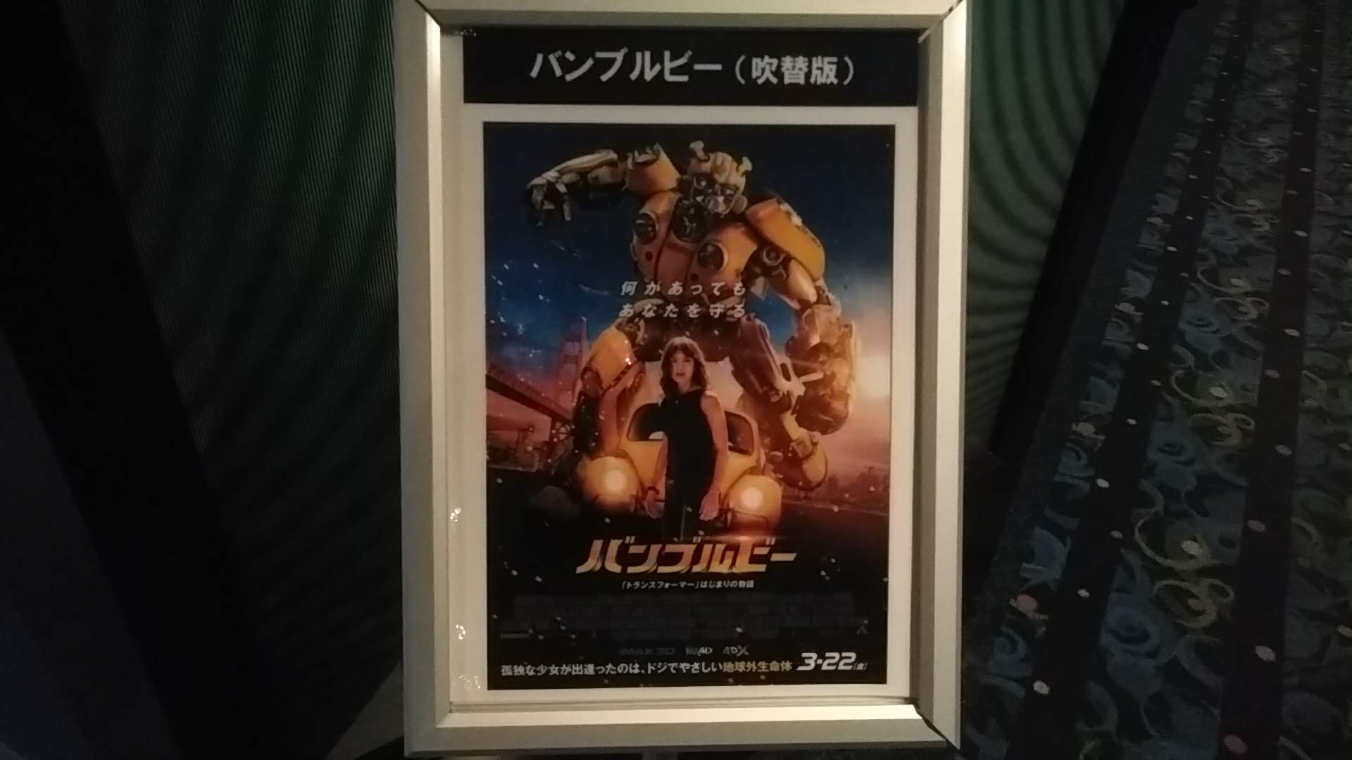 『バンブルビー』を金曜日に見ようと思ったら、ちょうどその日公開の映画に押されて、上映回数が減ってるわ、朝か夜にしかやってない。これでは予定が合わない、金曜日公開の映画が増えたのも困りものだ、と木曜日の午後に見ることに。