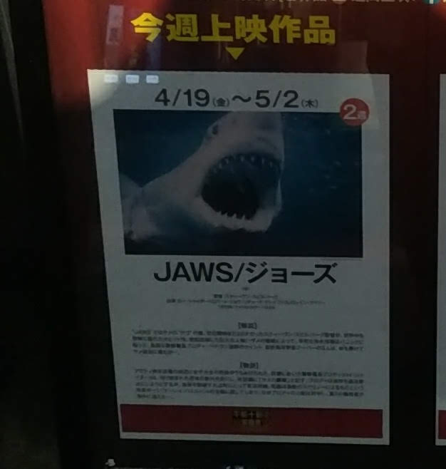 何度も見てるけどスクリーン初体験の『ジョーズ』を見に難波へ。前回の『未知との遭遇』と同じく、『午前十時の映画祭』枠である。なので早起きしていかないといけない。