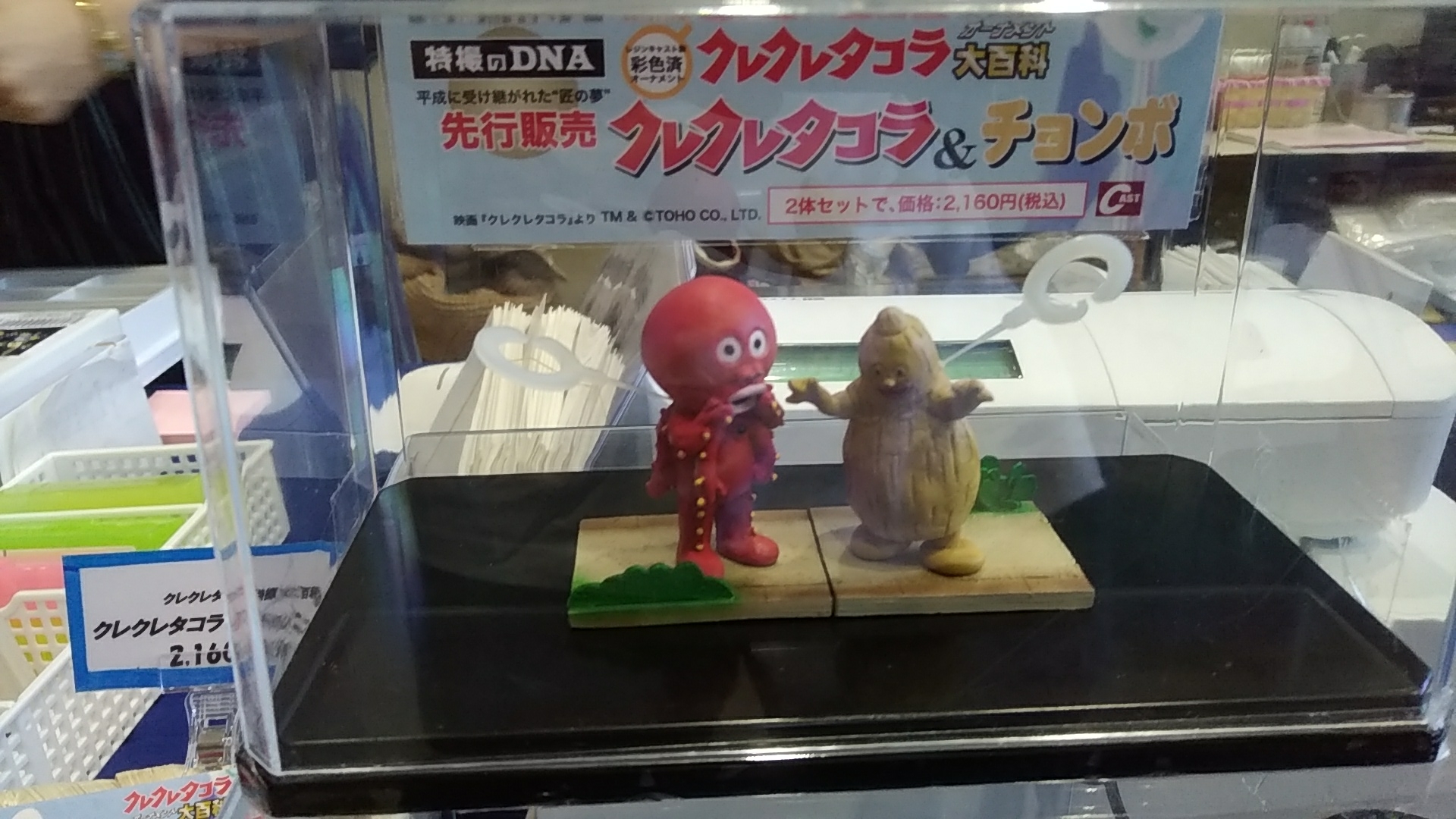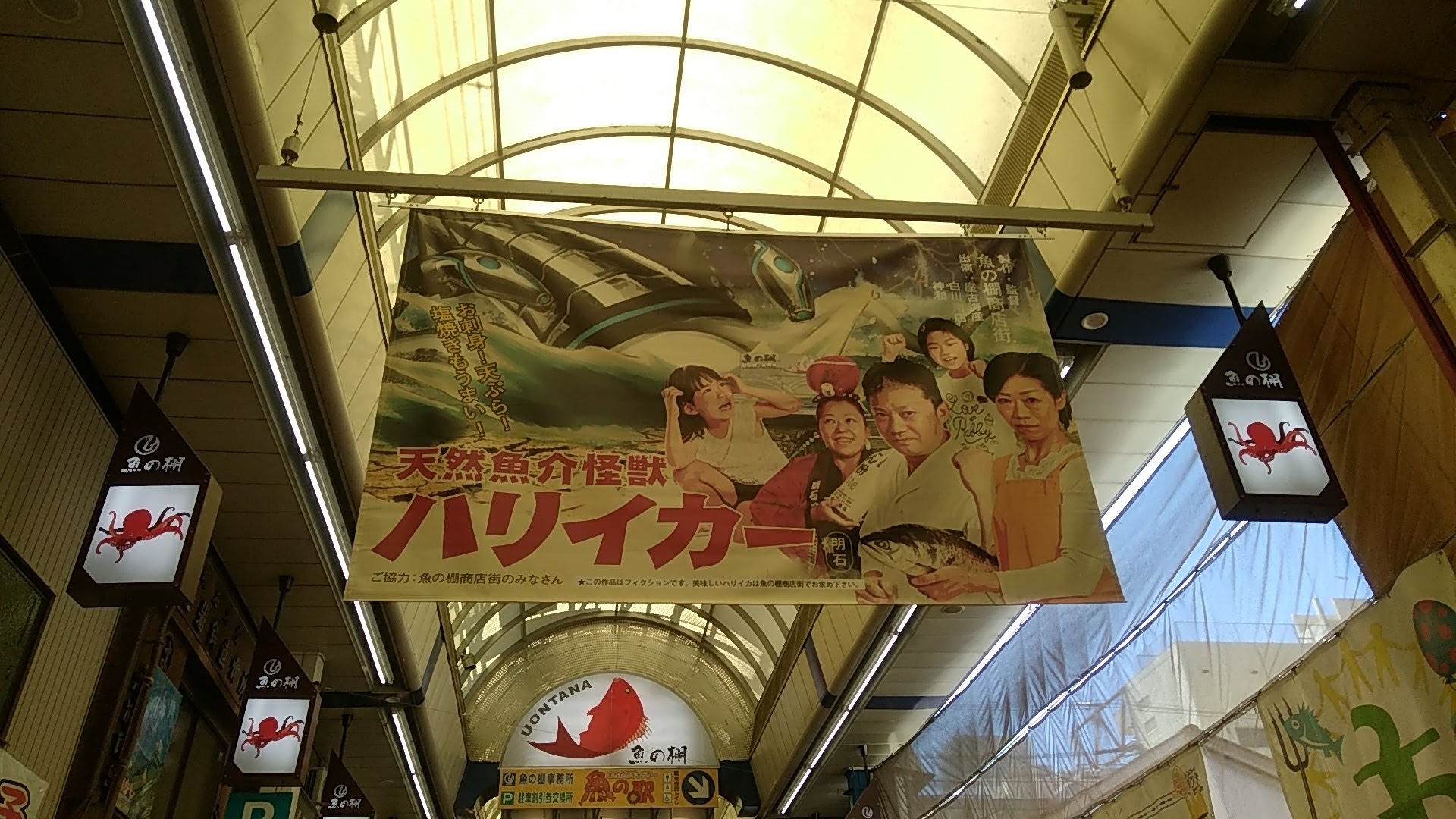 途中、高速道路でナビにだまされた、というか肝心な所で道を教えてもらえなかったので、とんでもない遠回りをしたけど、愚痴になるからいわない。 高速降りて、すぐに博物館に到着。冷房の効いた館内、入り口のメカゴジラでさっそく心を掴まれてしまう。 ほどよい広さの会場に『特撮のDNA』たちがぎっしり。 一階は主にヒーロー、メカの展示。二階ではゴジラ、モスラ、怪獣たちがお出迎え。全然飽きない、見応え十分な展示物。 物販も充実していて、キャスト社からは、タコの街、明石らしいクレクレタコラが。 駅の商店街には怪獣映画風の幟が。タコの街、明石は今夏怪獣の街に。楽しかったから、もう一回行ってみたい |