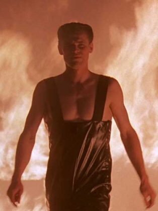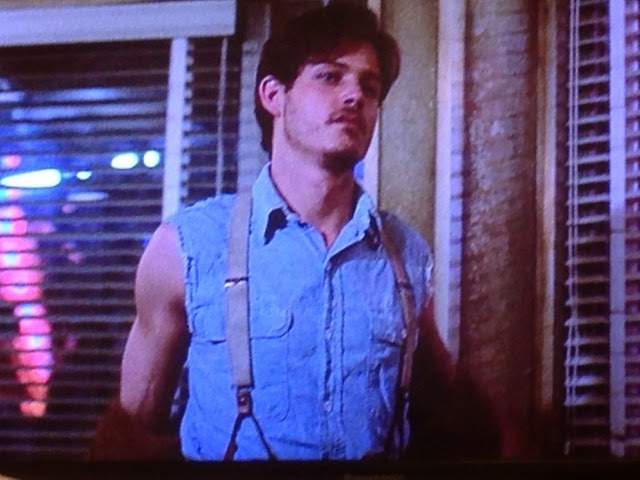 ヒロインのピンチに駆けつける、というか、電報で呼び出されて電車でやってくる、ダイアンレインの元カレのマイケル・パレ。無精ひげにロングコートは現代ウェスタンのスタイル。でも袖なしシャツとか裸サスペンダーはどうかと思う。一方、ウィリアムデフォーの魚屋スタイルもいただけないが、インパクトは十分ある。