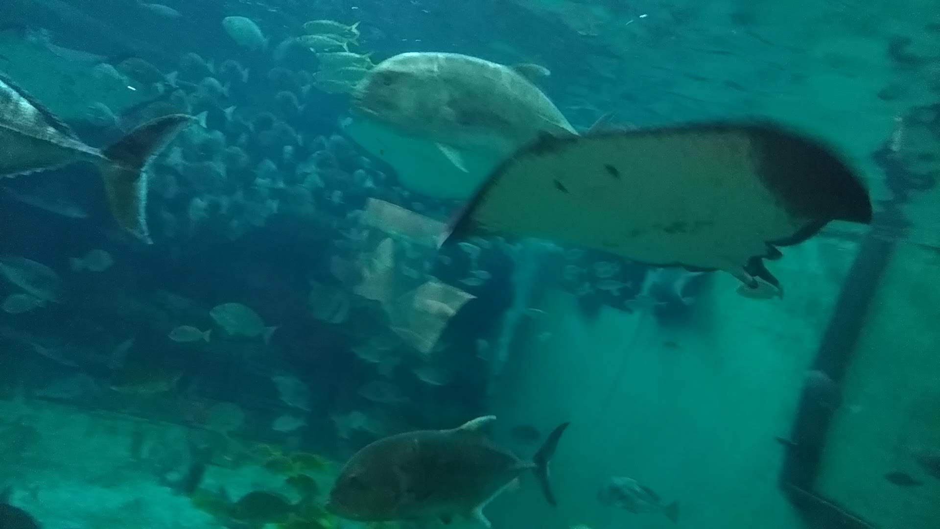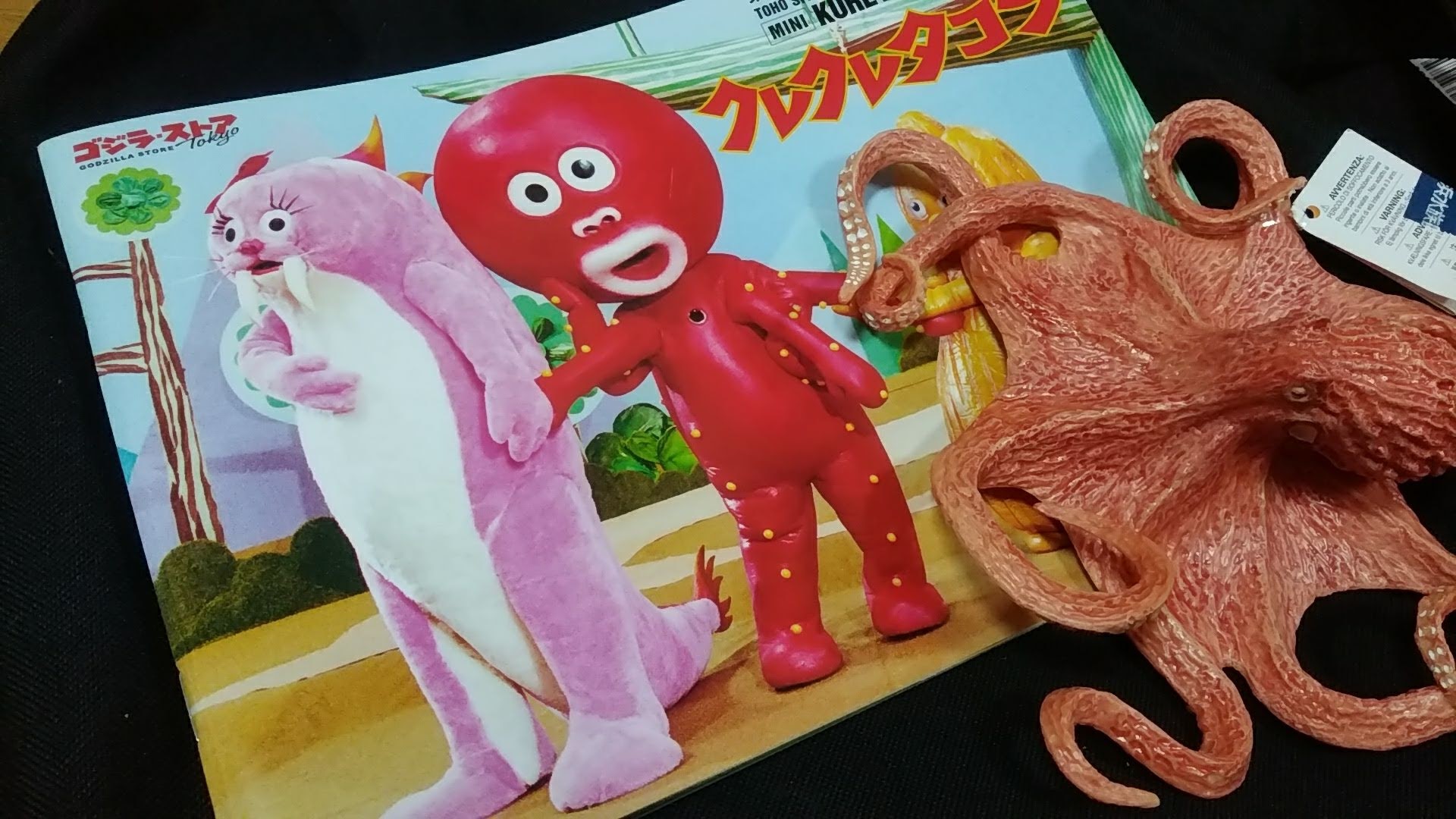 今回は湾岸線を使って海沿いをすいすい。 中島PAで広大な海が見えるトイレで用を足す。 途中、長い渋滞につかまるが、どうも明石海峡大橋に向かう列とかち合ってしまったらしい。そこを抜けると目的地はすぐそこ。ブックオフに立ち寄り、予定から大幅に遅れて明石市立文化博物館へ。 まずは昼食、と魚の棚商店街で明石焼き。 商店街にいた、謎の生物。やはりタコなのだろうか。 駅前をぶらついてやっと会場へ。本物がいる展示はなはり何度見てもいい。たぶんおそらく、同じようなものを前回も撮影したに違いない。でも、撮る。子供らも満足したようだが、一番満たされたのは父だと思う。 せっかく明石まで足を伸ばしたのだから、と次は須磨水族園へ。今度は生きて動く連中を見に行く。 ここにも怪獣チックな魚がうようよ。ラッコやペンギンといったかわいい動物も、もちろんいた。カピバラはネズミというには大きくて、イノシシというには小さい。が、ネズミの仲間らしい。 帰りに再びブックオフ。怪獣と動物とブックオフの好きな親子の1日はこれにて終了。 タコラのビジュアルブックとソフビ怪獣に絡ませられるサイズのタコフィギュア購入。明石だけにタコ尽くしでありました。