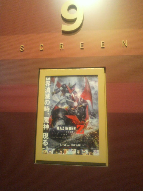大林さんは『ゴジラ2000』『シン・ゴジラ』にも出演、ご自身もSF好きとのこと。先にオーブの上映があって、いよいよトーク&サイン会へ。 大林さんはこの日のために当時に合わせるようにひげを伸ばし、それっぽい帽子に黒い衣装で、まさにブラック指令。フォトセッションではぐっとにらみを利かせて、まさに当時のまま! 今にも円盤生物を呼びそうな凄みさえ感じました。そして水晶がわりのガチャガチャのカプセルを掲げる姿はそのまんま、そりゃ本人だから。 トークでは面白いお話をたくさん聞くことができ、そしてサイン会では使ったマジックが『マッキー』という奇縁。北から南から大勢のブラック指令ファンに集まっていただき大盛り上がり、ちらついていた雪もいつの間にか止んでいました。 そして……野暮用を終え、映画館に戻ってみると『VSデストロイア』は終盤も終盤、ゴジラはすでに溶けていました。 でも『アマゾネス』『シンドバッド黄金の航海』『レスラー』のパンフ変えたからいいや。いいのか? ウルトラも超SDXも3月の一時休館まで毎月上映、さあ、次は…… ここ数年、怪獣界隈での知り合いも増え、怪獣の話題に事欠かない状態が続いていますが、あっちの方がさっぱりなんです。怪獣と同じく大好物のマジンガー、ゲッター関係の話題を共有できる相手がいない。怪獣もの以上に単発で作品が発表されるから、話題に上がりにくいし、半ば過去のものといった感じもあった。でも大丈夫、昨年末のオールナイトでグレート対ゲッターを見て興奮し、そしてついに『劇場版マジンガーZinfinity』がやってきた。初日に行きたかったが、子供らと行く約束をしていたので、一週間の我慢。そして先週末、奈良のTohoシネマズ橿原のレイトショーで見た。 大感動の大満足、大興奮の映画でした! けっこうけっこう、大結構! 見たか君は? 聞いたか君は? と誰彼構わず問いかけたくなる、そんな映画。 昨年の制作発表から期待と不安の入り混じった気持ちで公開を待っていたけど、予想をはるかに上回っていた。リメイク、リブートにせず『テレビアニメ版の10年後』という設定はファンには嬉しかったが、作り手には難しいところだったと思う。あれから10年、兜甲児はすっかり大人の研究者になり、弓さやかは光子力研究所の新所長。剣鉄也は軍人で、炎ジュンはそんな鉄也の子供を身ごもっていた。みんな大人になってしまったなあ。劇中で甲児とさやかさんが専門用語をバンバンぶつけあったりしているのを見て『昔はUFOしか作れなかったくせに』と思うのですが。 しかし、それでいいわけがないのだ。富士山から発見された巨大な魔神、そしてそのキーとなるアンドロイド少女(今風)、そして復活するドクターヘルと機械獣軍団! 主人公側は大人になって『理屈のある』生活を営んでいるけど、悪者たちは理屈なんかクソくらえ、以前のように世界征服を目論むのみ! まるで変わらない、いや変わらない方がいい! かくして兜甲児は再びマジンガーZに乗り込み、ドクターヘルに戦いを挑むのでした。 冒頭からグレートマジンガー大活躍でおもわず体が前に乗り出し、そのまま元の姿勢に戻ることがなかった。それぐらいに満足の一本でした。ニーインパルスキック出されたら、ねえ。 ただ、『あれから10年』と行っても『どこから10年?』という思いもあった。どうやら宇宙の王子は来なかった世界らしい。その時点でもう正当な続編ではないし、ガミアって原作だけだろ、スカラルドとか、劇場版の機械獣だすとデーモン一族とデビルマンのいた世界という事になるのか?とか、マニアの悲しい性で、細かいことを考え出したらきりがない。 しかし、いつまでも変わらないドクターヘルの挑戦を受けて兜甲児もかつての自分に戻っていくのが嬉しい。そしてバッタバッタと機械獣をなぎ倒すマジンガーZのかっこよさ! テレビ版のオープニングを延々見せられているような快感がそこにはあった。もうこれで映画終わってもいいよ、と思うぐらいに! 本当に『バッタバッタ』と、遠慮なく機械獣軍団を倒していく。あしゅら男爵、ブロッケン伯爵も専用機械獣で迎え撃つ、最後に控えしは地獄大元帥だ! まさか21世紀になってかっこいい地獄大元帥が見れるとは思っていなかった。今度の地獄大元帥はめちゃくちゃ強い! 無敵要塞デモニカの修理のことばかり考えて死んじゃった10年前とは違うぞ。 大人になった兜甲児が、昔の友達、ドクターヘルと再会し、かつての自分を取り戻す、そんな映画。研究者とか結婚はマジンゴーの後だよ。それと、ヘルと同じく、まったく変わらないボスとボスボロットの活躍に心が和むのでした。ちゃんとヌケとムチャもいるし、昔のままだ。 昔のテイストを変にアレンジすることなく、かといって昔のままで終わらせず、いかにして今風に落とし込むか? という難題を何とかクリアした一本だった。 もう今年のベストの一本に入れてもいいし、機械があったらもう一回見たい。
