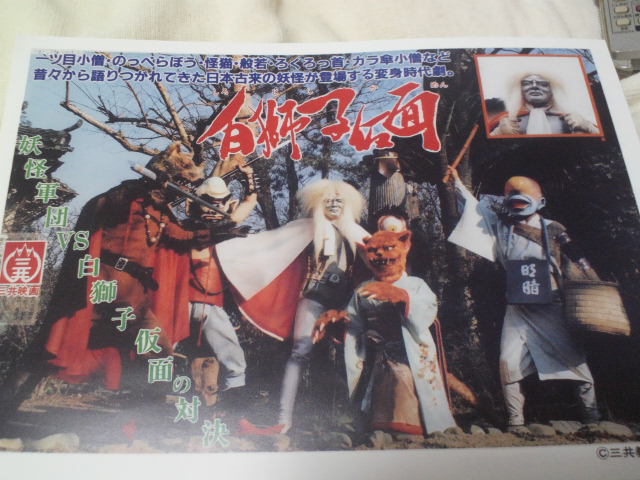 休憩をはさんで今回のオマケ『白獅子仮面』上映。去年に続きまたかよ! そうだよ!京都が作ったあの不思議な変身ヒーローをまたやるんだよ! 平山監督をホテルに送り届け、戻ってみると、白獅子仮面が半裸の一つ目小僧軍団と戦っていた。チャンバラには慣れた京都のスタッフも変身ヒーローの殺陣というものに苦心している、そんな感じがした。しかし、そこがまた魅力でもある。そしてそのまま『東海道四谷怪談』へ。同じ江戸時代の物語でもこんなに違う。