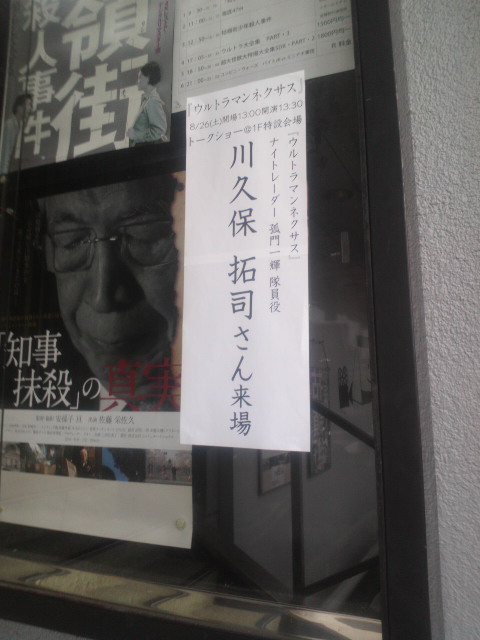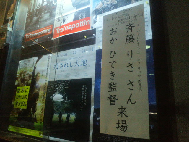 そして『ウルトラマンサーガ』上映。『ダイナ』、そして『コスモス』の後日談的な意味を持つ作品で、ダイナ最終回から続けてみると、光の中に消えたアスカが帰ってくるとか、意外にすっきりして見れる。斎藤さんはこのまま『サーガ』も鑑賞。上映後はおか監督との『サーガ』トーク。何が緊張するかといえば、ゲストもですが、とにかく舞台の上が苦手なんです。多分、目はキョロキョロと泳ぎ、口はポカーンと開いてるんだろうな、と思います。