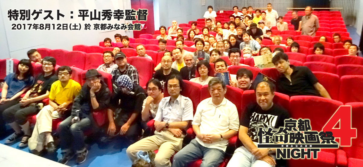 そして監督と一緒に『学校の怪談』上映。エンドタイトルで巻き起こる大拍手。そして全員参加の記念撮影。この時、一つ目小僧の恰好をしていたのですが、他に誰もホラーな仮装をしていなかったので、こっそりと。今回も失敗した。