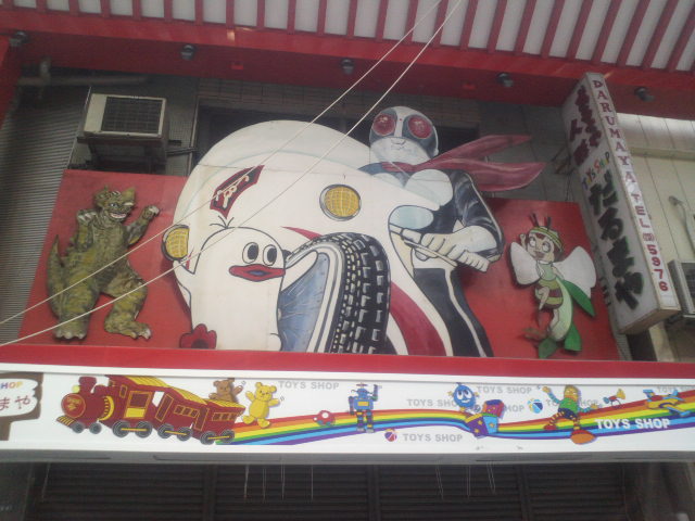 今回の旅のメイン『ゴジラ展』である。ゴジラというキャラクターを使って、ものづくりというものを楽しく解説。 入口には精巧な街のミニチュア、そして会場内には劇中で使用されたプロップや資料、デザイン画などがずらりと展示。中でも会場後半に並んだ本物怪獣スーツの展示に胸躍る。モゲラ、キングギドラ、ガイガン、ゴジラに天井を見上げるとデストロイアとモスラ! もうこのまま一日中居続けたい、でも子供らがさっさと展示を見て外で待っている。もうちょっといさせてくれ! 午前中ゴジラ展で遊んでから再び大須へ。古くからの門前町としてにぎわった街である。古くから栄えた町ではあるけど、京都っぽくもないし、なんばや日本橋のような雰囲気もそうでもない、やはり、名古屋は名古屋。大須名物のブラジリアン鳥の丸焼きを食べて、ブラブラ散策。古本屋よって、ゲーセン行って、やることはあまり大阪と変わってない。