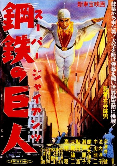 連続活劇の体裁をとる『鋼鉄の巨人』正続編は、今見るとおかしな言動や宇津井健のモッコリなど、本筋とは関係ない笑いどころがたくさんありましたが、真摯にヒーローものを作ろうと試行錯誤していている感じがひしひしと伝わる。大胆な合成や、ワイヤーや細かいカッティングで見せるアクションなど、見どころも多い。日本初の宇宙ヒーローであると同時に、日本初の『悪の秘密基地』が登場した映画ではないだろうか。広大な敵の基地セットはどことなく後の007シリーズを思わせる。それに賛美歌に乗って去っていくヒーローなんてかっこいいじゃないですか、スタイルはともかく。