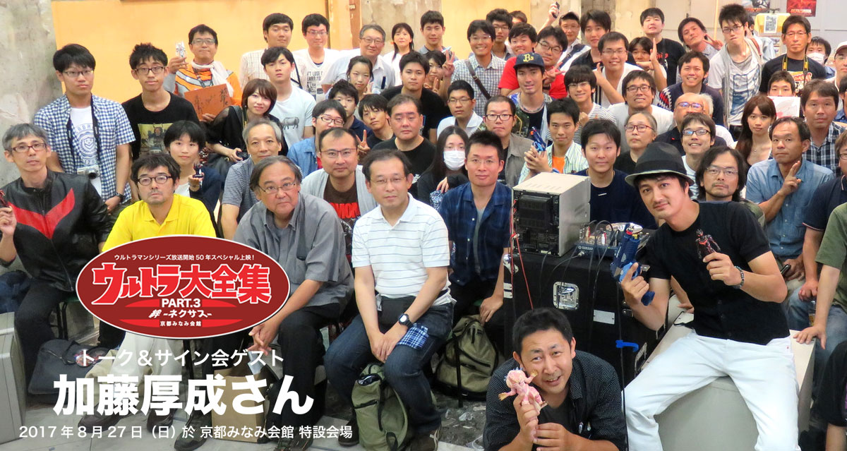 思えば、遠くへきたもんだ。いや、何とかやってこられたものだ。ちょくちょくはやってきたけど、まさか月イチでウルトラ大全集、ゲストトークの司会をするなんて。喋りに長けてるわけでも、あふれ出るほど豊富なウルトラの知識があるわけでもない。毎回アウアウしながら、それでも特に大きなクレームもなくやってこれました。お客様の中には『あの質問は何だ?』『あのトークでいいのか?』と思われる人もいたかもしれませんが、まあ、それでも『お前、今月でバイバイな』と言われることもなく、やってこれました。とはいえ、一年近くも続けてきてもいまだにアウアウな司会なのであります。そんなグズグズな司会を笑ってみてくれるお客様の寛容さにただただ感謝するばかりです。