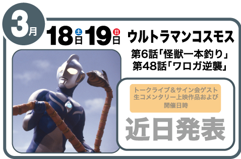 そして場所が変わって二階の映画館で『怪獣一本釣り』『ワロガ逆襲』上映。怪獣保護というコスモスのメインテーマにふさわしい前者と徹底した宇宙人との攻防に終始するアクションの後者。1年3か月、5クールの長丁場のコスモスは、実にバラエティに富んだ内容であります。