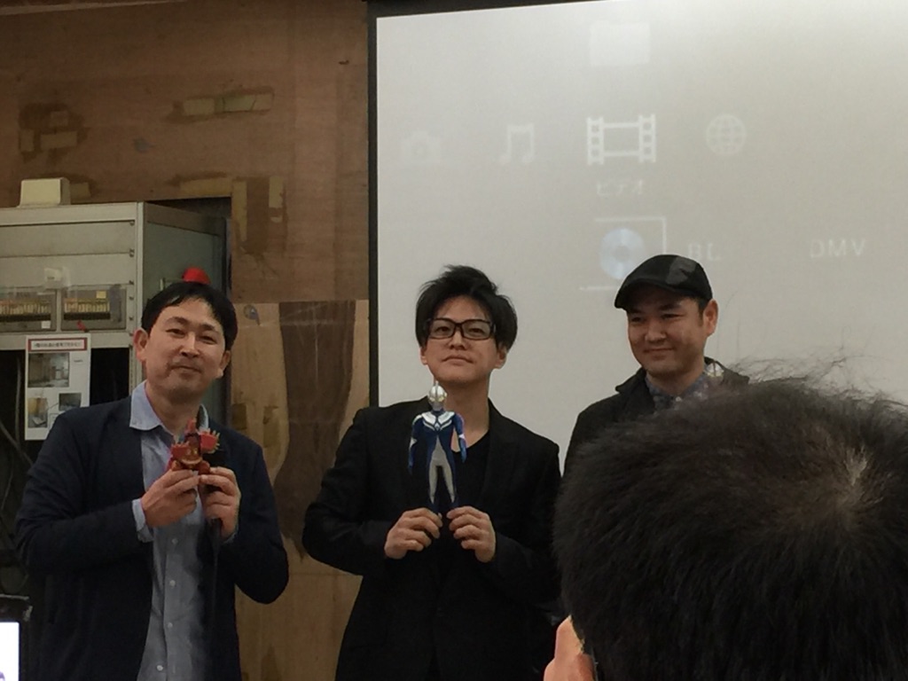 後ろの人が見えないという市瀬さんの提案で、イベント初の立ちトークに。さらに、飛び入りゲストの渋谷プロデューサーも交えてのエンディング&フォトセッション。いつもいつも、『何を話すか?』よりも『どのソフビにするか?』を考えてしまう。今回は大きいコスモス持ってきてよかった。