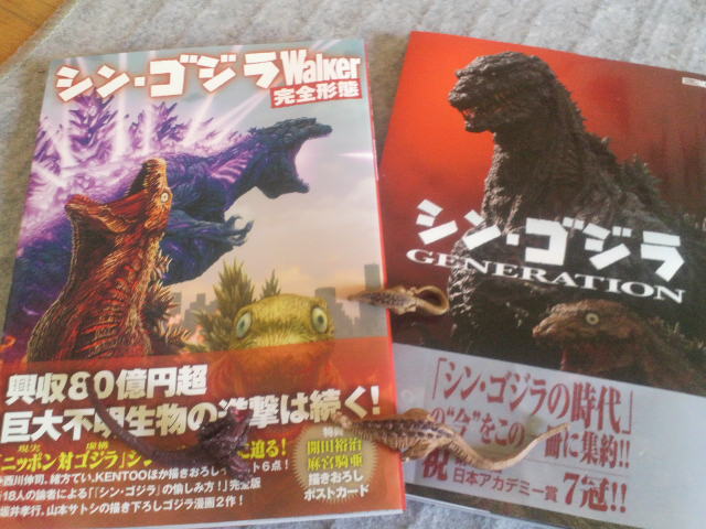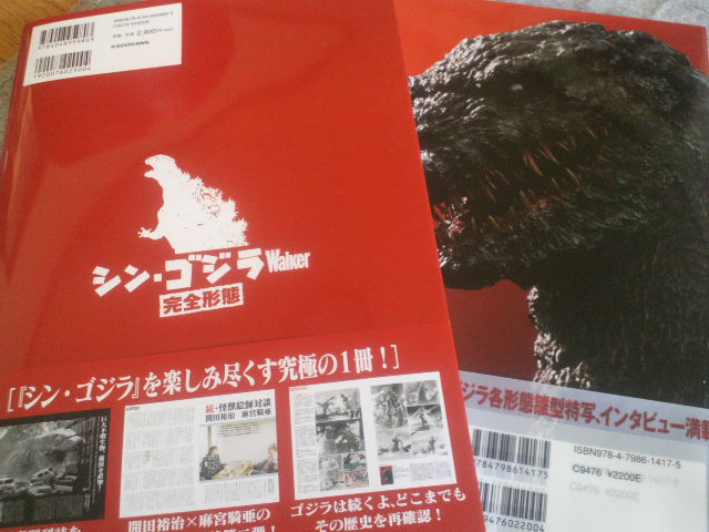 3・31、お手伝いさせていただいた『シン・ゴジラGENERATION』と、かなりお手伝いさせていただいた『シン・ゴジラWALKER完全形態』が無事発売となりました。映画そのものについて深く切り込んだ前者に、映画そのものを楽しむ後者、どちらも鑑賞のお供に最適の書籍ではないかと思います。特に後者では編集さんとあっちいったりこっち行ったり、あることないこと書いたり、牧教授じゃありませんが『好きにした』記事をやらせていただきました。そして出来上がったものを読むと、京都とか寝屋川に通ってる人に向けて作られたピンポイントな書籍じゃないの? という仕上がりですが、たぶん気のせい。シン・ゴジラを見た人、これから見る人に向けて作られた内容充実の一冊となっております。個人的には、本当に言われないとわからない、ピンポイントなネタをそっと書き込んである仕掛けになっておりますが、内緒。